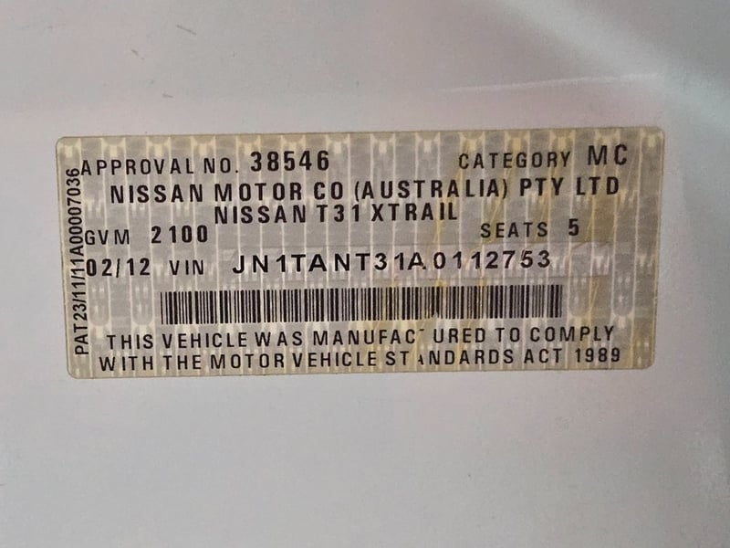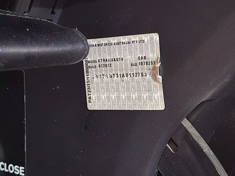 UNRESERVED 2012 Nissan X-Trail T31 ST Year: 2012 Make: Nissan Model: X-Trail Series: T31 Badge: ST Body: 5-Door SUV Drive Type: All wheel drive Odometer: Indicating 206,287 Kilometers Engine: 2.5 Petrol Transmission: Continuously variable Colour: White Seats: 5 Description/extras: Power windows, Central locking, Log books/Owners manual. Vendor reports: 4 new tyres, new front and rear brake rotors,. dents. Price Guide - $5,050 - $7,100 (Based on Unmodified Vehicle) VIN: JN1TANT31A0112753 ENG No: QR25383862B as per PPSR #PCV #ONETOTEN #Ajax (Key #A2) Lloyds stock #1029504+1