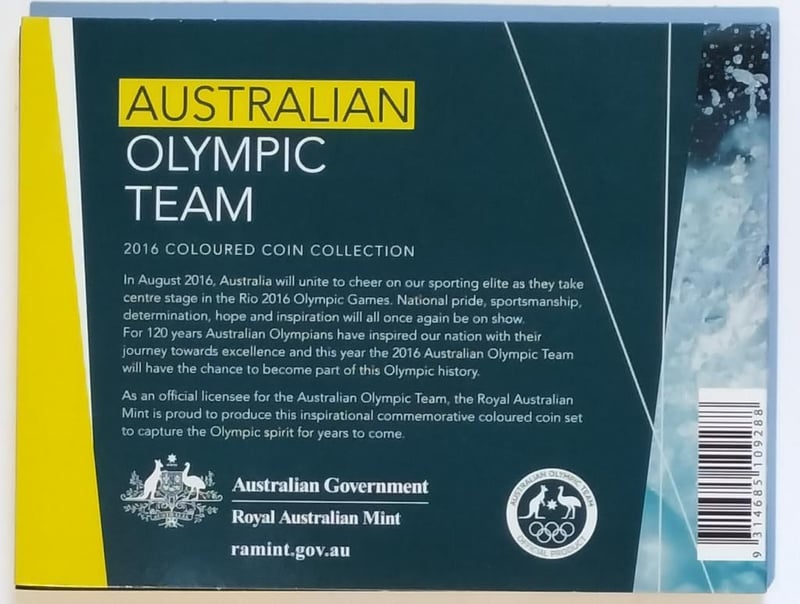 2016 AUSTRALIAN OLYMPIC TEAM 5 COLOURED $2 COINS COLLECTION Condition: UNCRam Issue23528+3