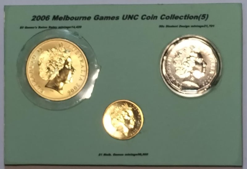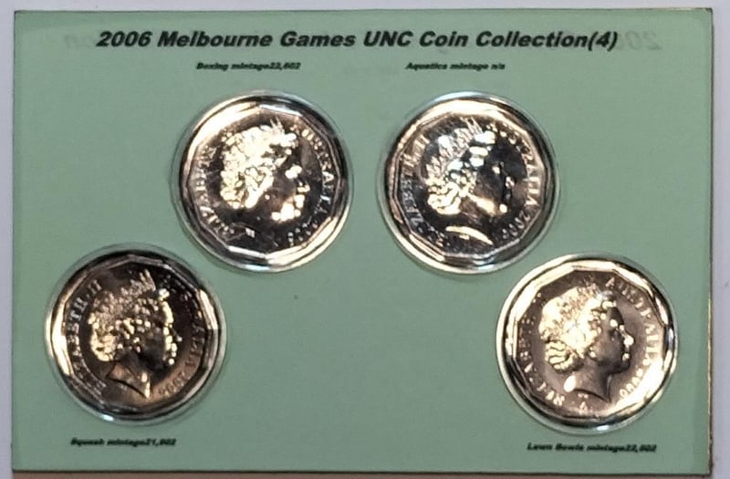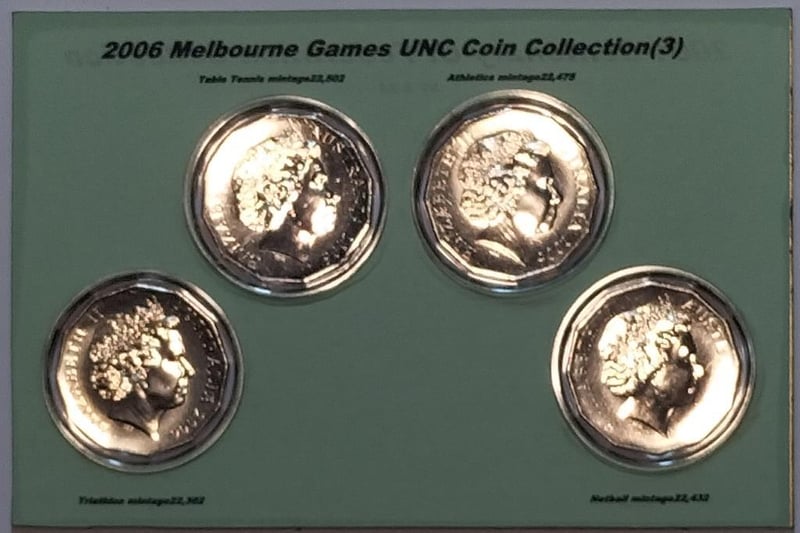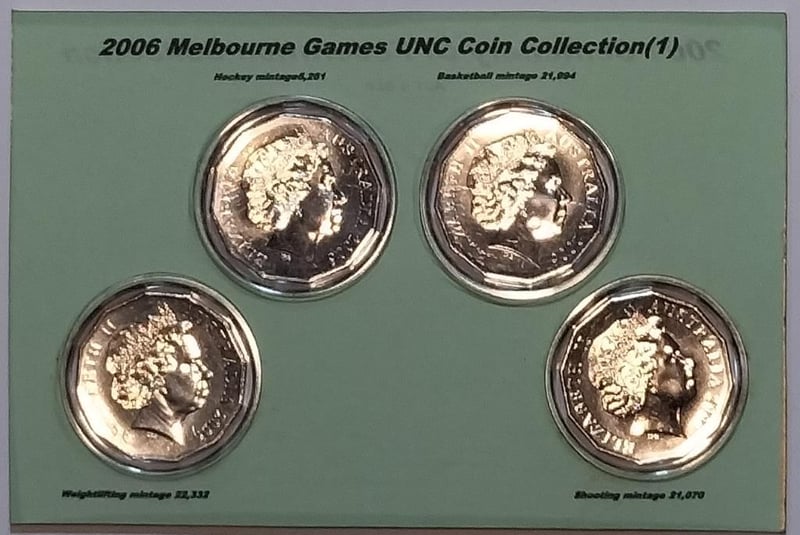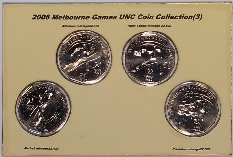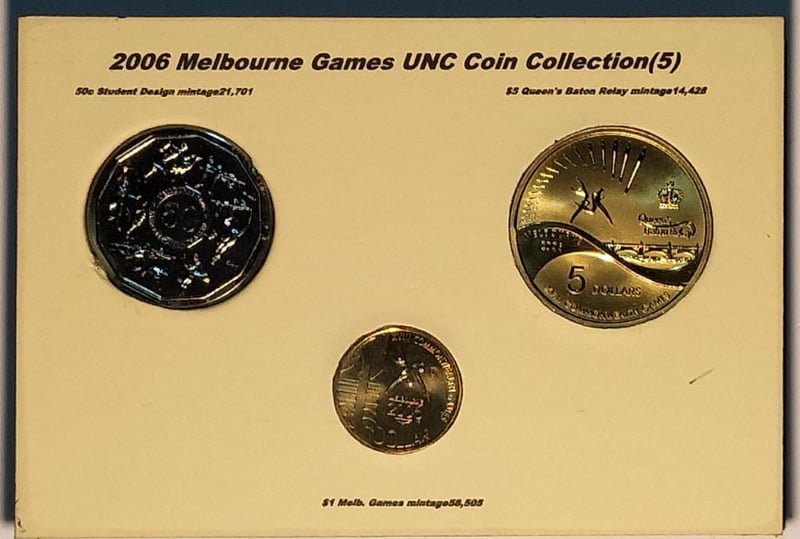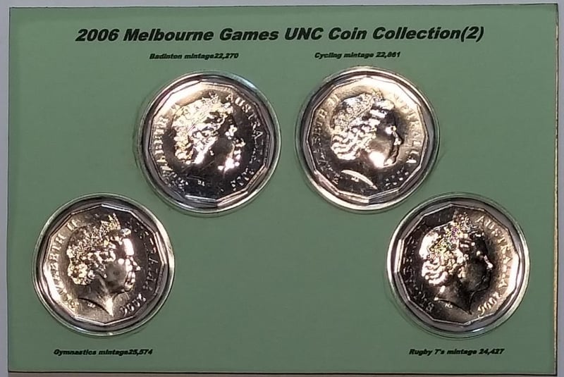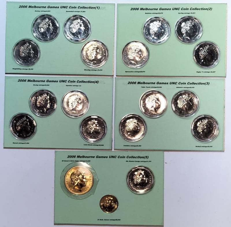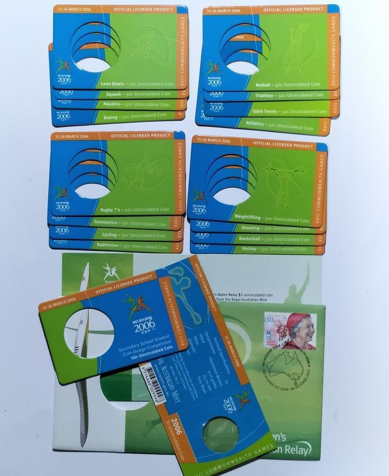 2006 MELBOURN XVIII COMMONWEALTH GAMES 50C COIN SET 16+3 Include: 16Xsport 50C; 1Xstudent Design 50C; 1X $5 Queen Baton Relay; And 1X$1 Melb.Games(Extra). 19 Coins In Total. Condition: UNCEx Mint Card/Pnc23528+17