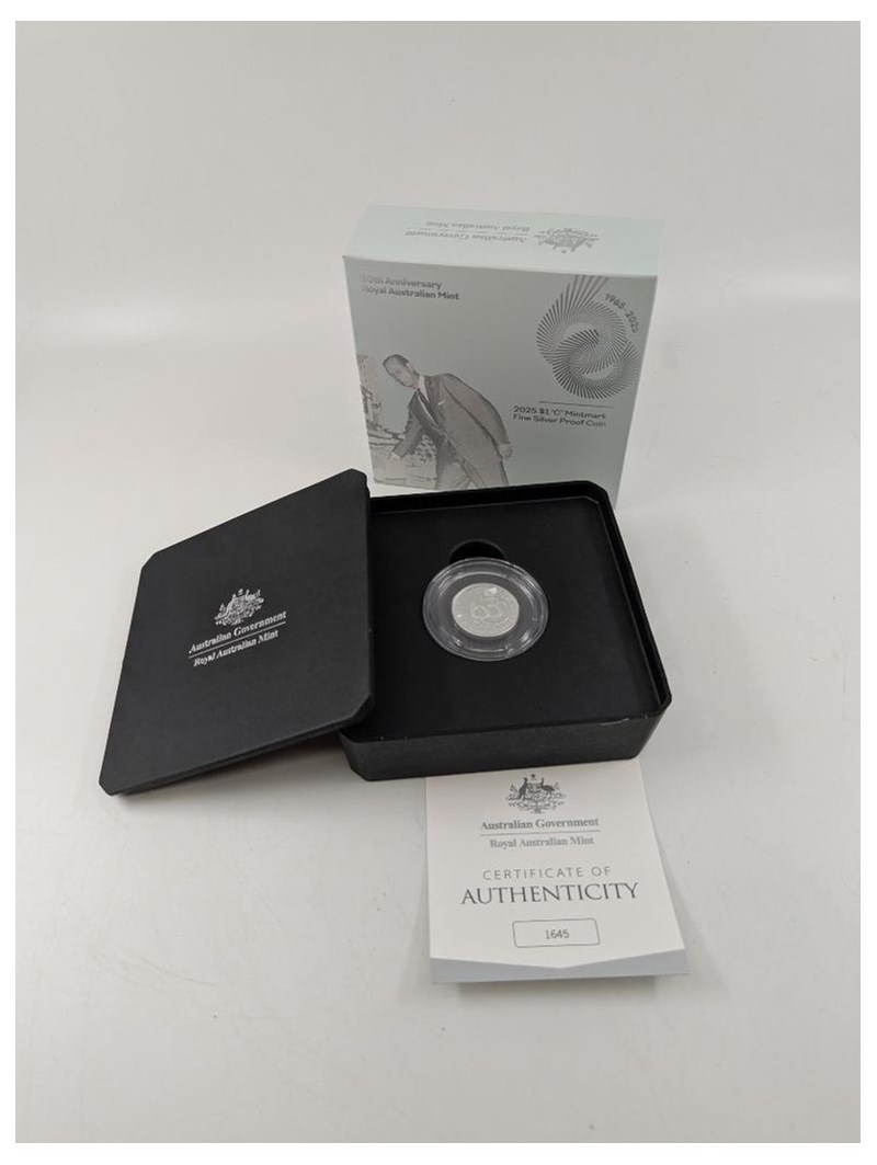 ROYAL AUSTRALIAN MINT 2025 ANNIVERSARY 'C' MINTMARK 1OZ SILVER COIN.Condition: Proof235307+12