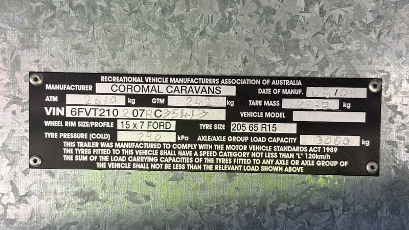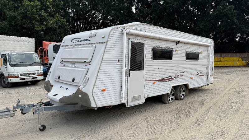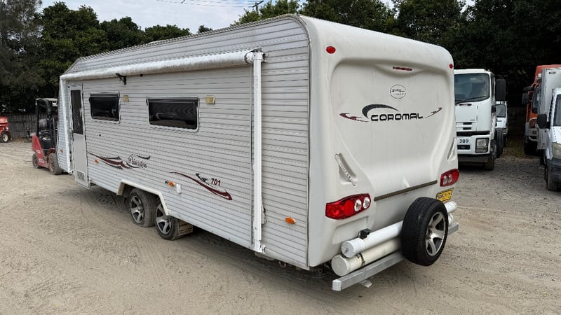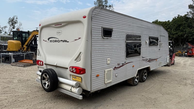 2008 Coromal P7015 lifestyle caravanYear: 2008Make: CoromalModel: P7015Body: Caravan LifestyleColour: WhiteConfiguration: Dual AxelATM: 2610kgsGTM: 2421kgsTare: 2138kgsDescription/ extras: Double bed, shower, toilet, sink, fridge, drinking and grey water, LPG, storage, stove top spare tire and moreVIN: 6FVT2102078C35413key# MMR4 Carrara#MMR