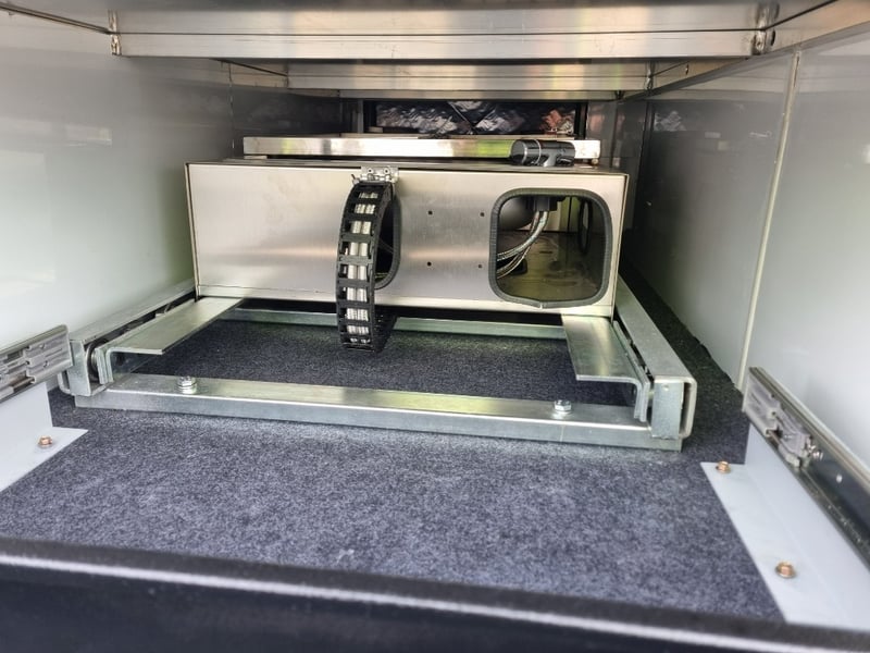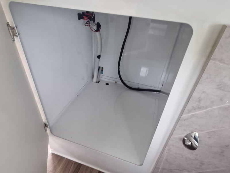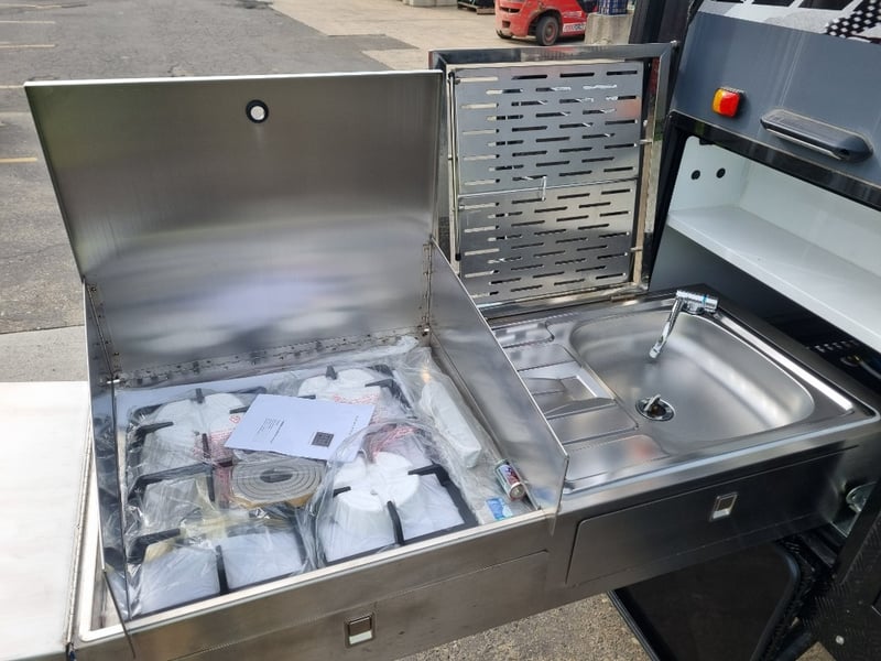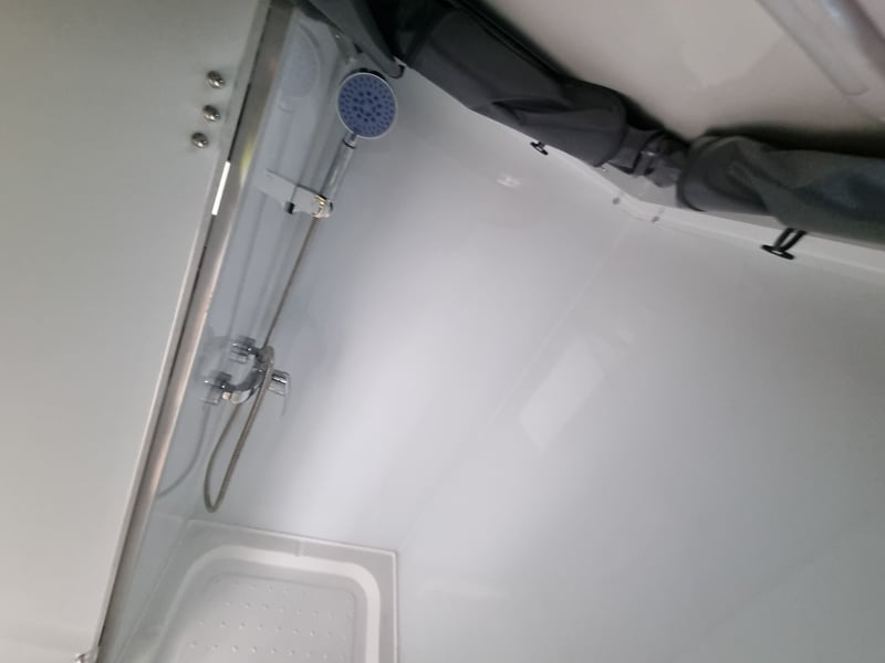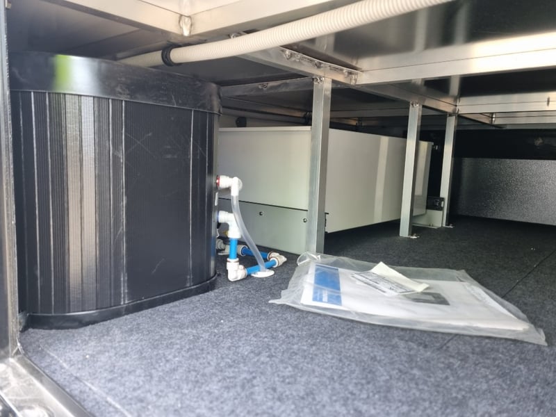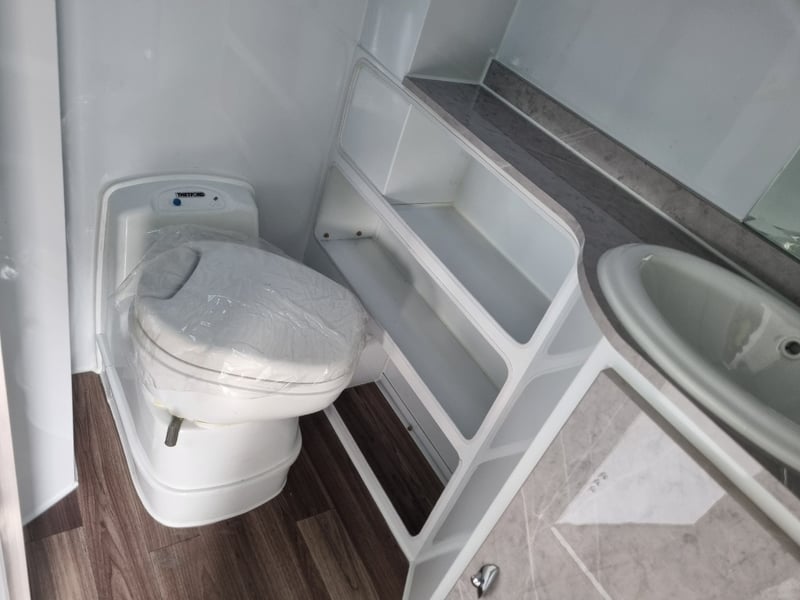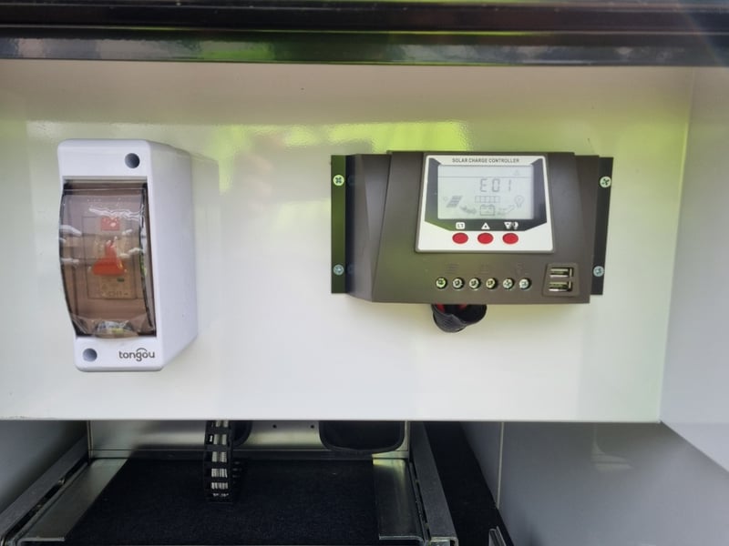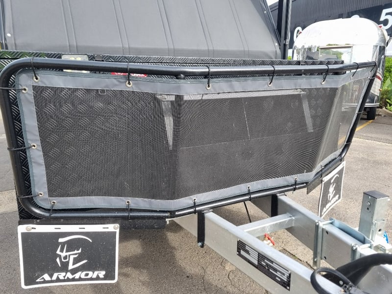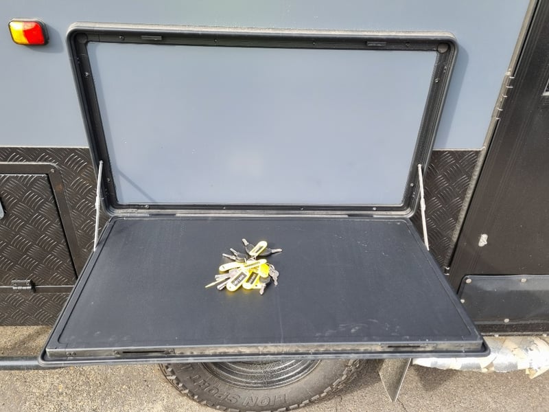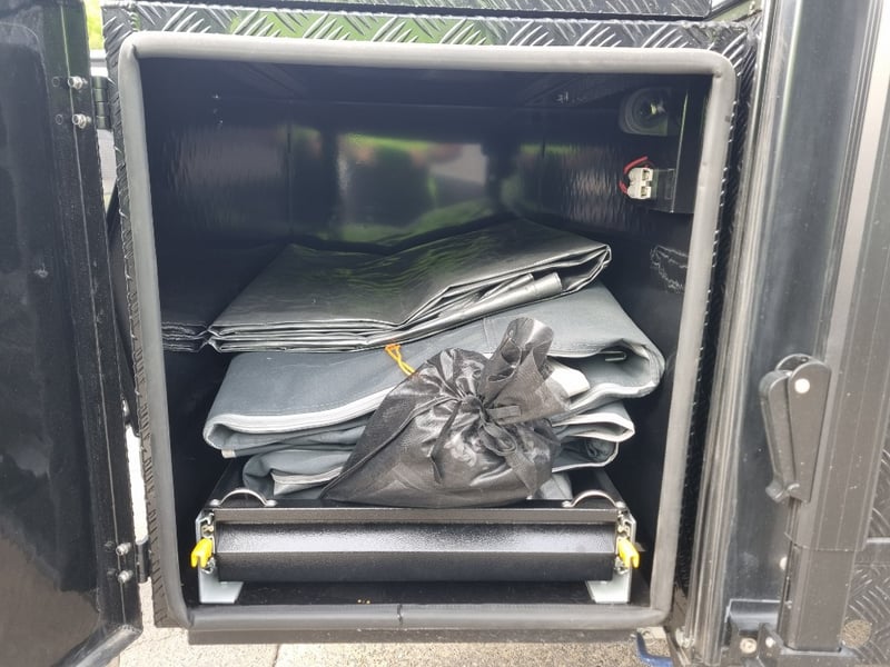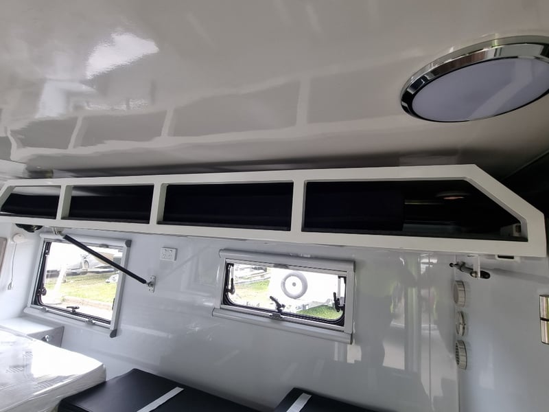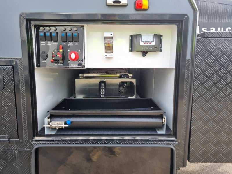 Finish: Hot-Dip Galvanized steel frame, Jockey Wheel: Heavy duty steel, Includes: 2 x Jerry can holders, Water tank: 180 L, Waste water tank: 120L, 2 x Gas bottle holders (9 KG bottles), Bedding area: LED Lights with Switch, Lights: Built-in LED Lights (internal & external), Solar Panel: 200W Roof mounted solar panel, Electric: 2000w inverter, 30A charger .240v inlet and Australian standard wires, air condition, truma water heater, Stabilizer legs: 4 x quick lock-up and wind down drop-down stabilizer legs, tent