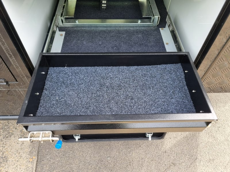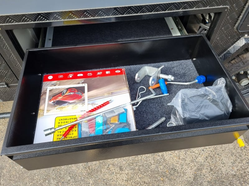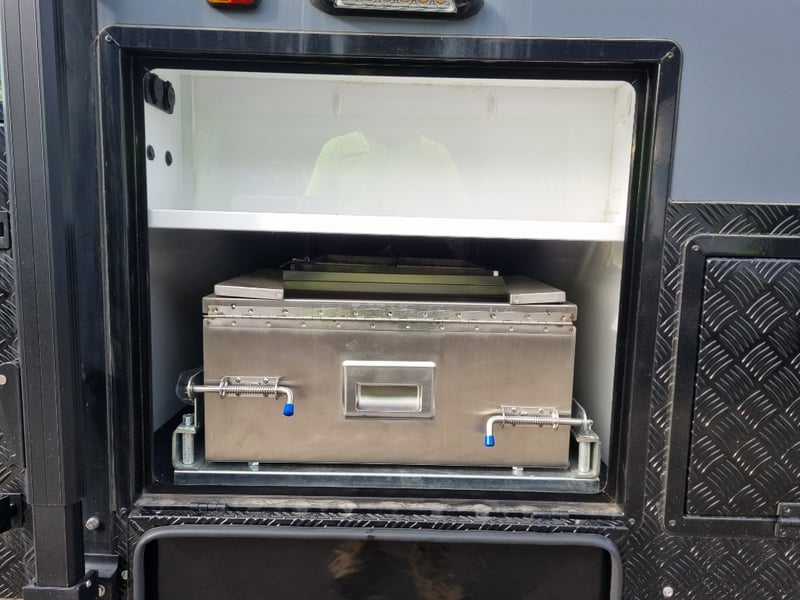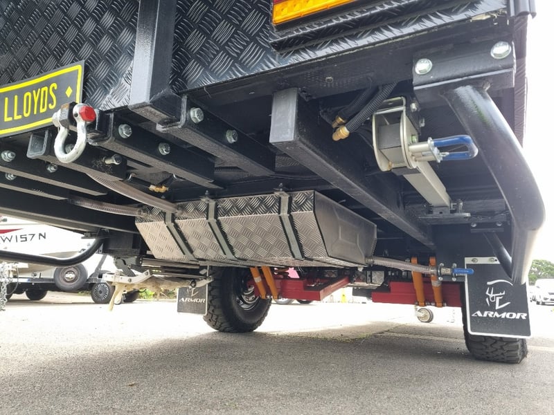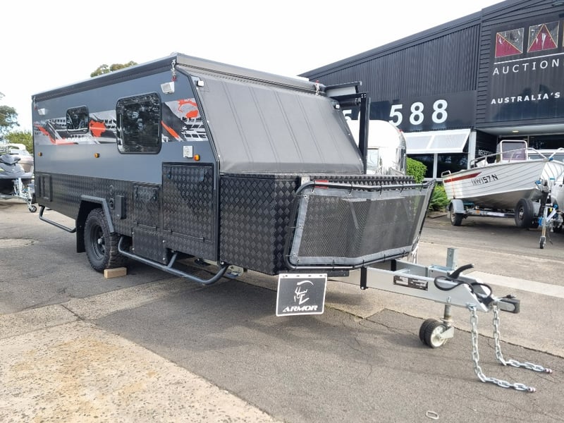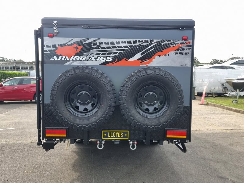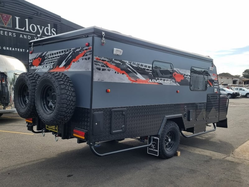 Chassis: Extra Heavy Duty off-road frame, Suspension: Coil spring, twin shock absorbers, independent trailing arm, wheels and Tyres: 4 x Alloy Wheels, 2 x Brand New Spare 16” 6-stud Land-cruiser, pattern tyres and rims (265/75R16), Brakes: 12-inch, electric Brakes plus additional Hand Brake, Coupling: Off-road Heavy-Duty coupling with double safety chains,