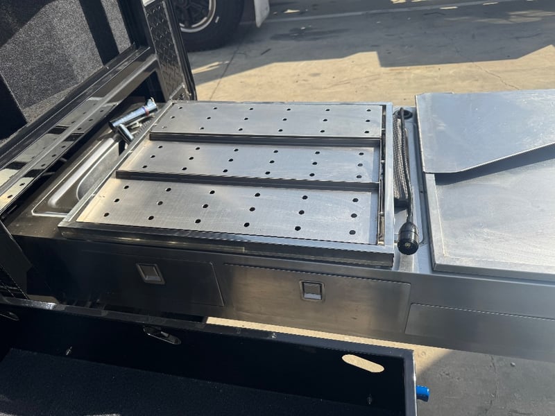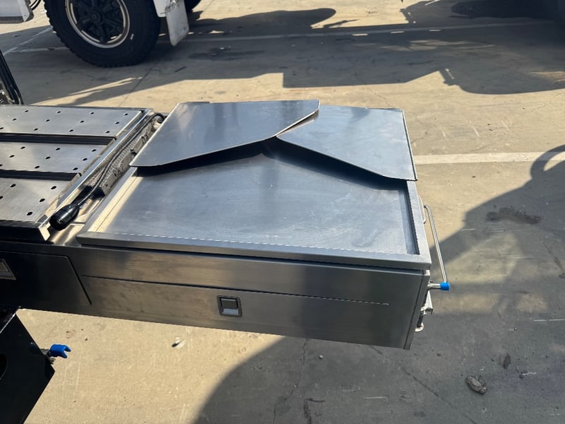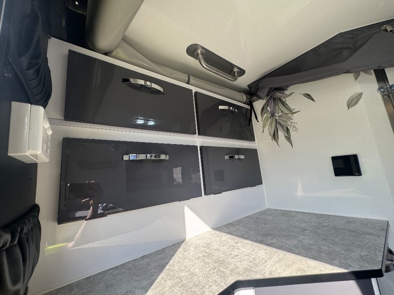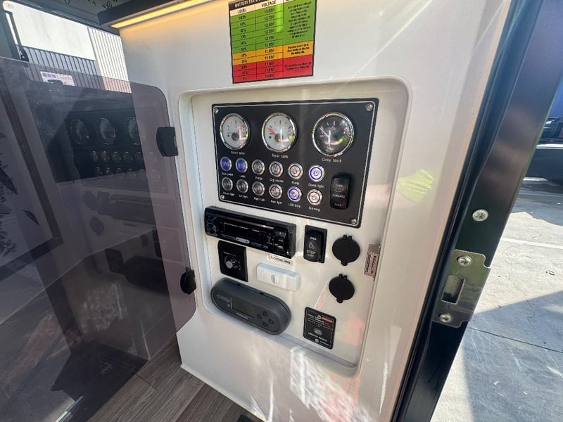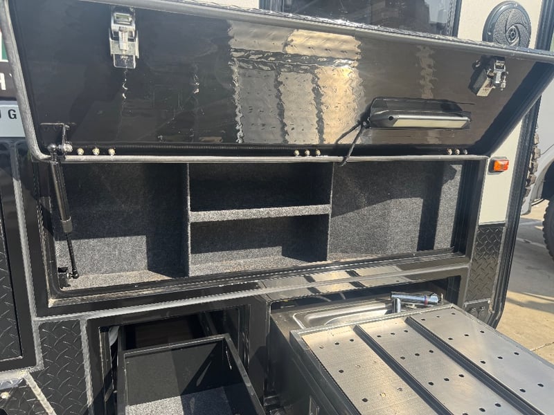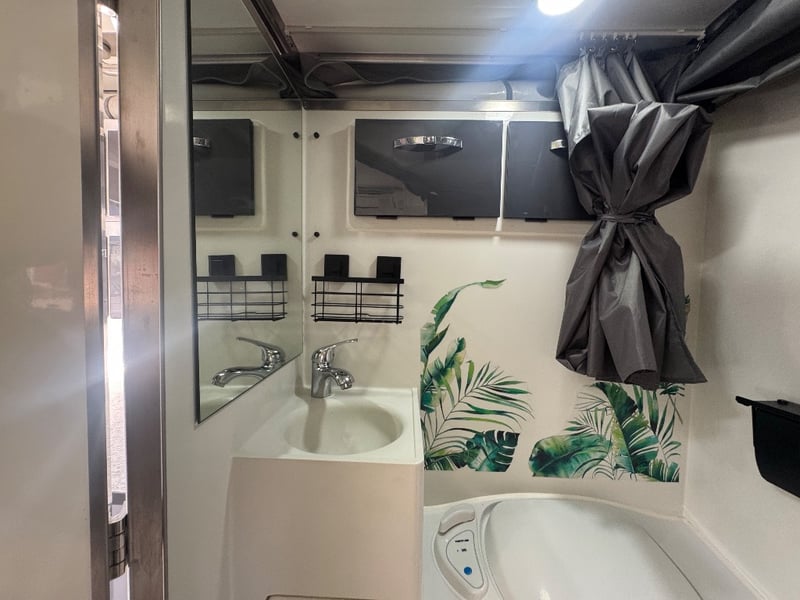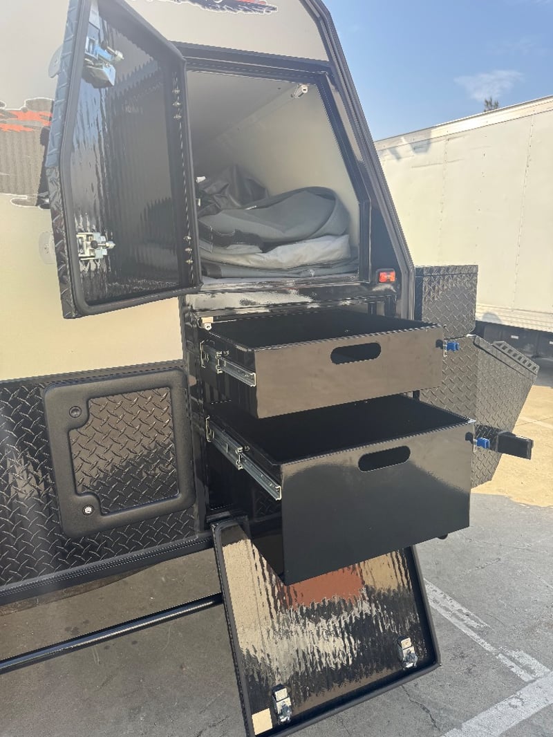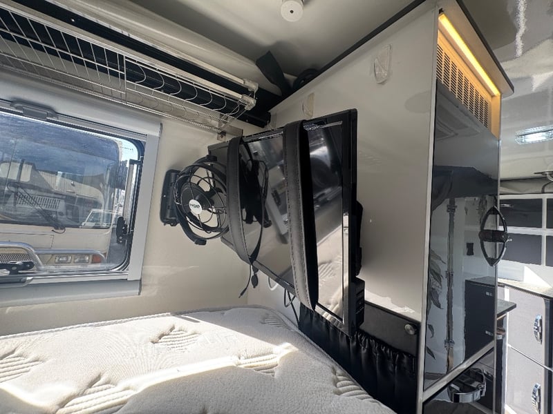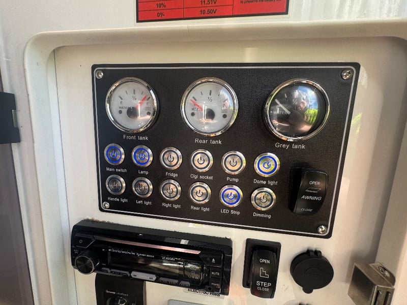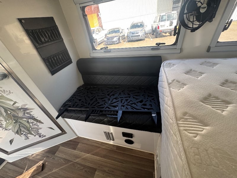 Description/ extras: Multiple exterior storage, outside speakers, outdoor power point, 2 spare tyres, electric side awning, water heater, 7 pin connector, electric assist entry step, aircon, shower toilet, sink, fire extinguisher, ambient lighting, stereo system. Pullout Kitchen, Fans, Tv