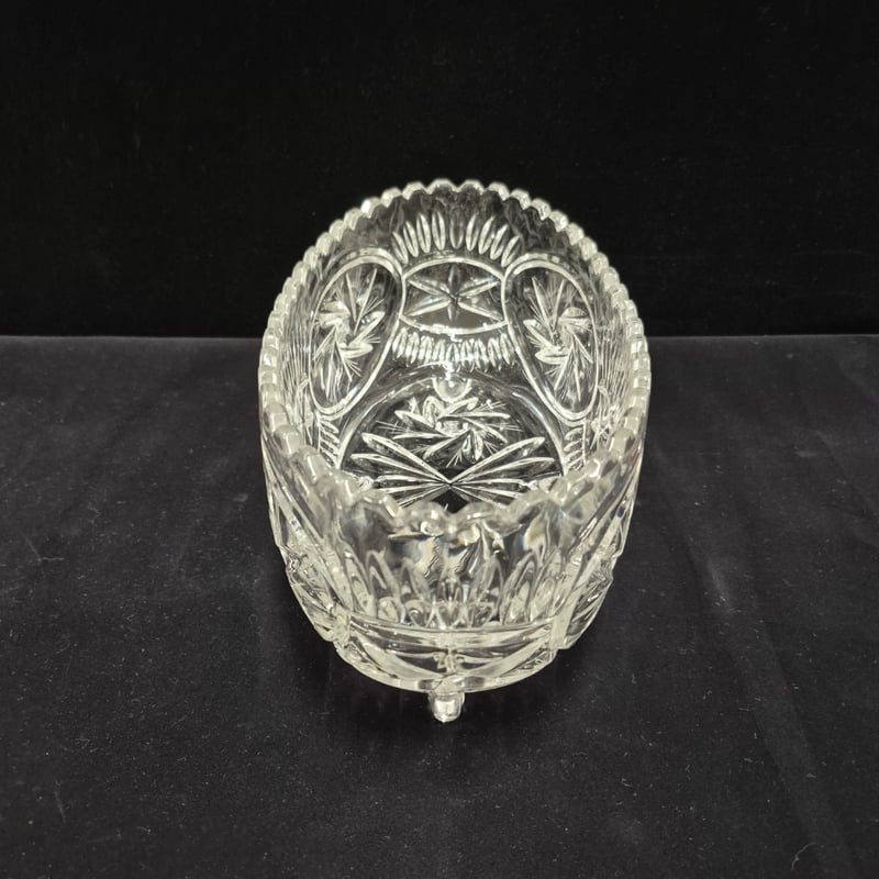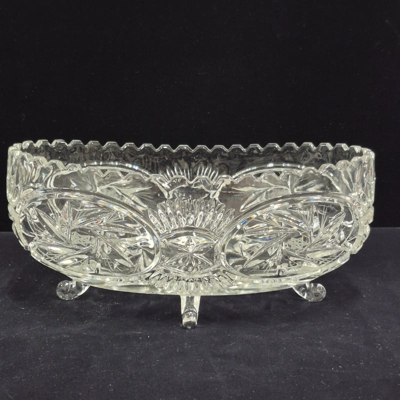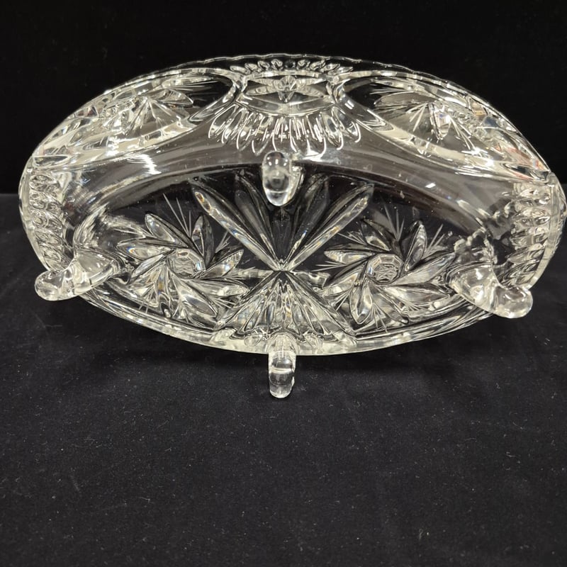 VINTAGE CRYSTAL FOOTED BOWL. Item Size: Height: 12cm, Width: 28cm, Depth: 15cm Condition: Good - Refer To Images LOCATED RACK 6B 587690+14