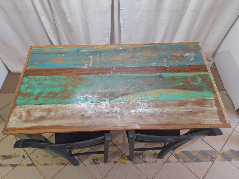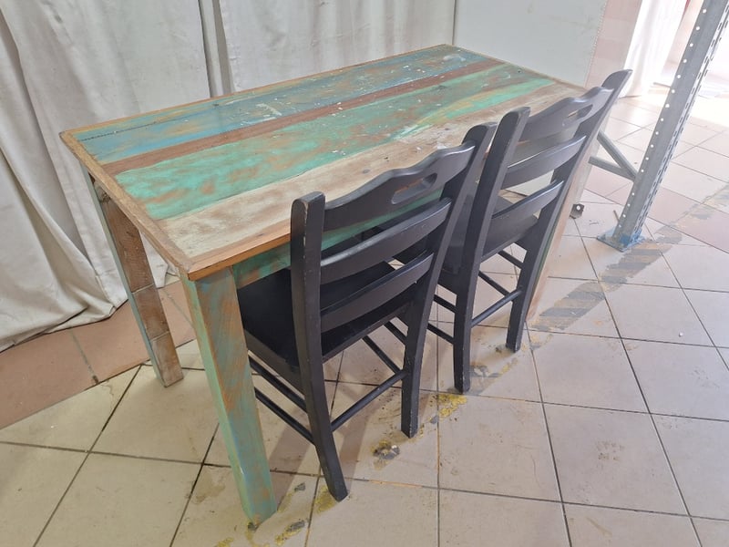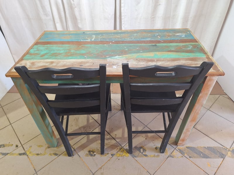 2-Seater Dining Table, Timber Style, Multi Colourd Table & Black Finish Chairs