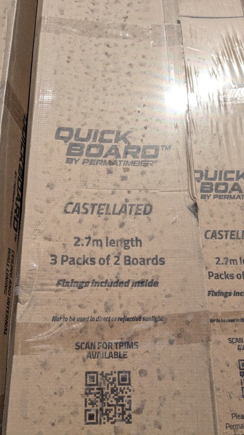 Quick board Castellated Boards, Colour: Arctic White Dimensions: 2700mm (W) x 230mm (D) BID PER PACK MUST TAKE 7