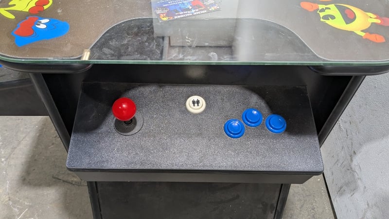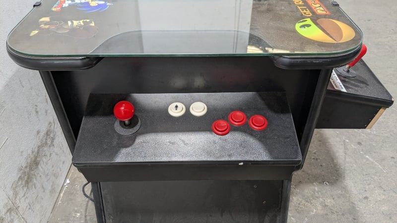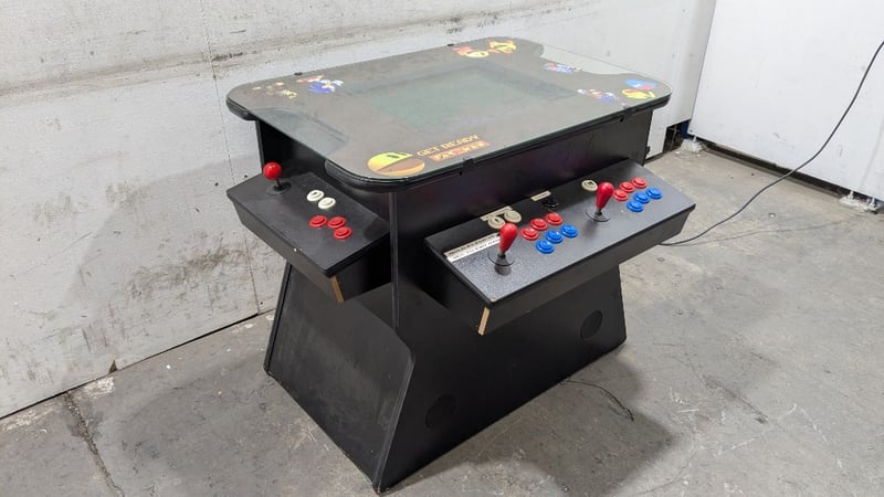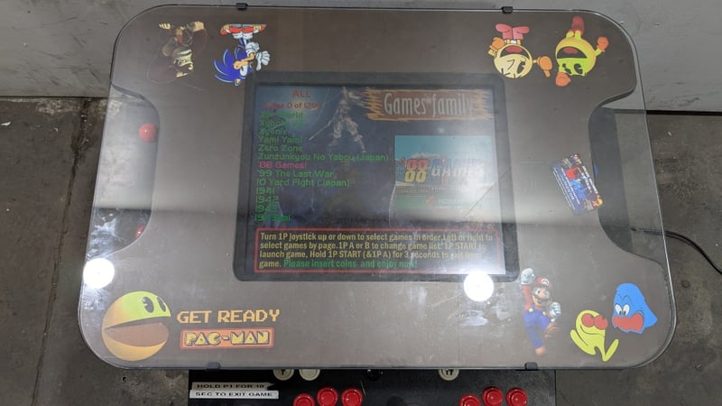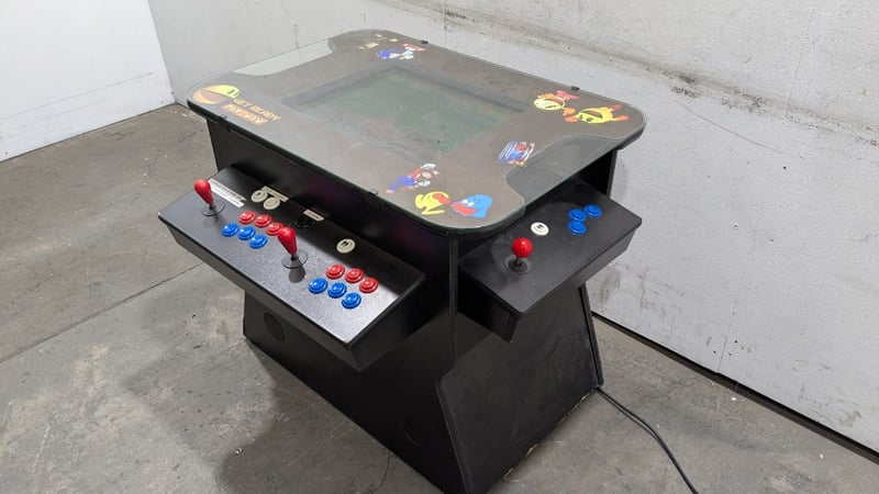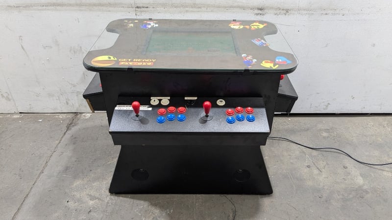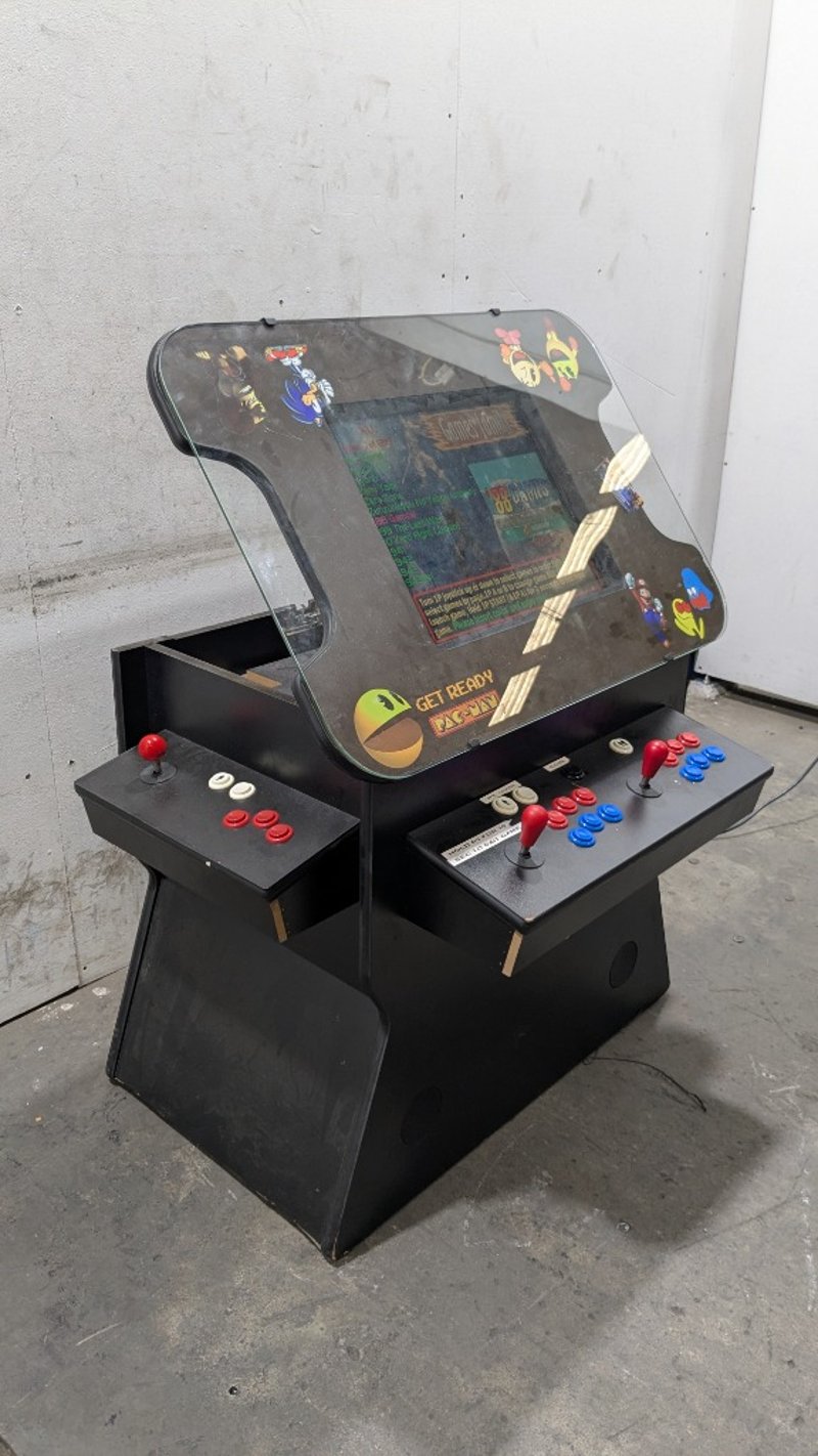 Arcade Machine: 3 side tilt sit down Make: N/A Model: N/A Serial: N/A Description: 1293 Games, 3 Player Cocktail cabinet Dimensions: (H)72cm x (W)90cm x (D)70cm Note, no key, no power cable, screen clasp is damaged, occasionally pops open