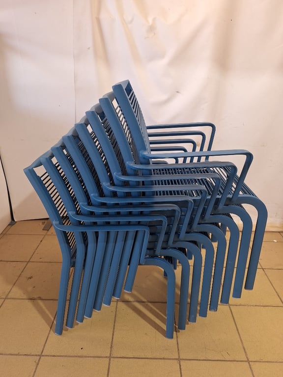 x8 Outside Chairs, Metal Style, Blue FinishDimensions H:85cm W:57cm D:54cmSOLD AS LOT