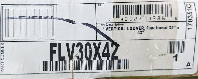 FLV30X42, Vertical Louver, Functional 30" x 42"