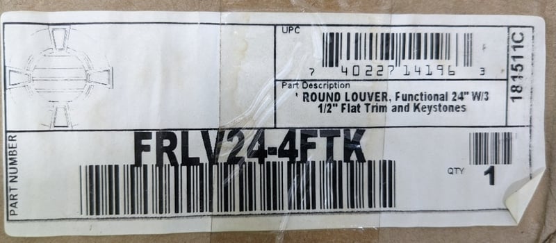 FRLV24-4FTK Round Louver, Functional 24" W/3 1/2" Flat Trim and Keystones.