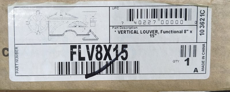 Assorted items, includes, FLV8X15, Vertical Louver, Functional 8" x 15" and more..Sold as a lot