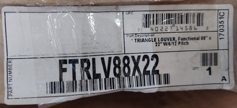 FTRLV88X22, Triangle Louver, Functional 88" x 22" W/6/12 Pitch Bid Per Each