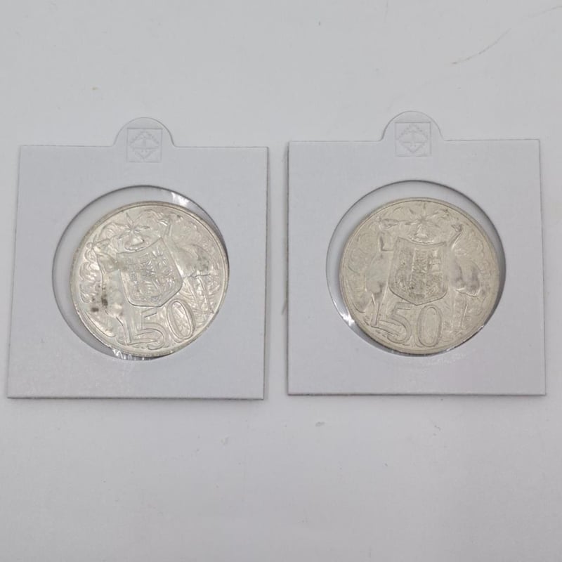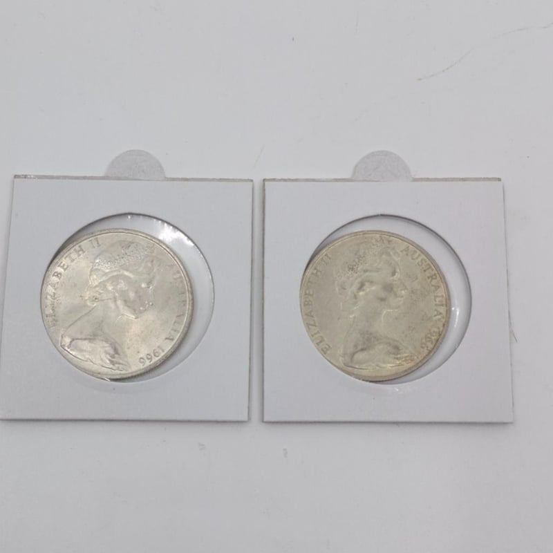 TWO AUSTRALIAN 1966 ROUND FIFTY CENT SILVER COIN. HIGH GRADE Condition: Good587689+52