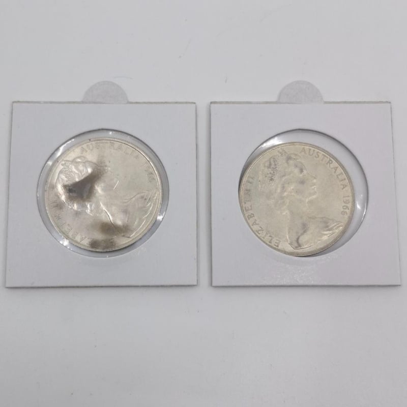 TWO AUSTRALIAN 1966 ROUND FIFTY CENT SILVER COIN. HIGH GRADE Condition: Good587689+56