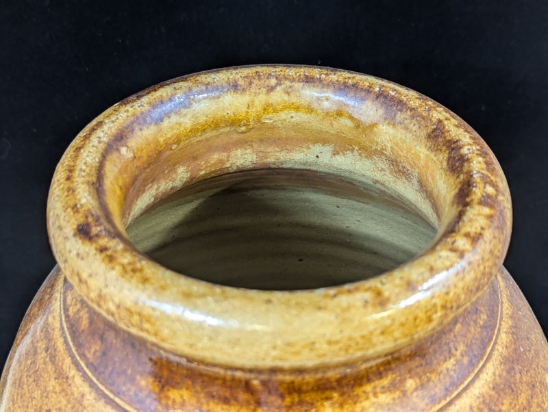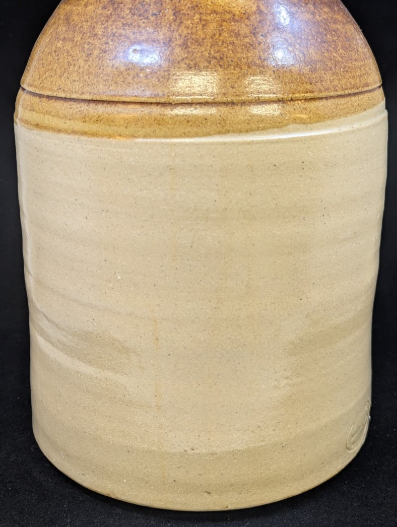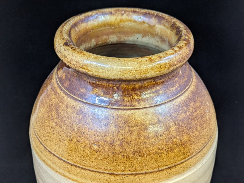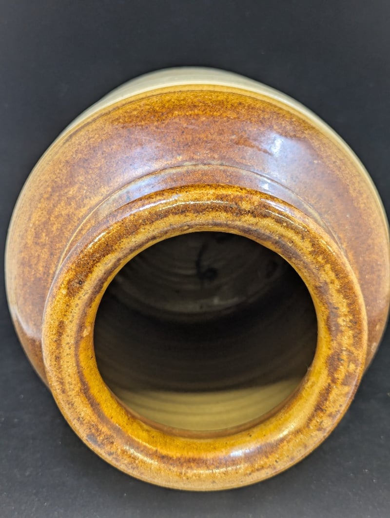POTTERY JAR Item Size: Height: 36cm, Width: 25cm, Depth: 25cm Coffee Colour And Beige Exterior Condition: Good - Refer To Images 584943+2