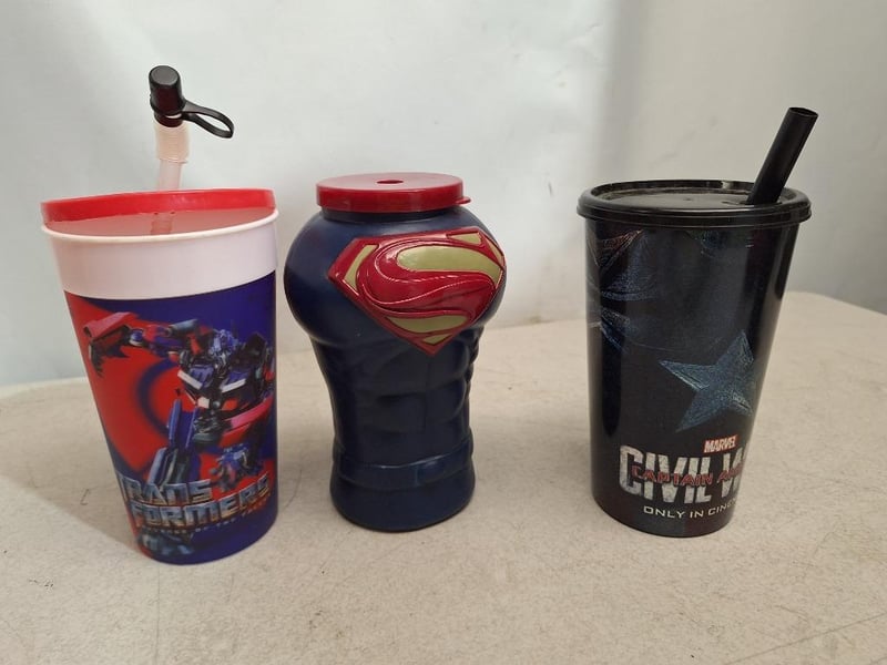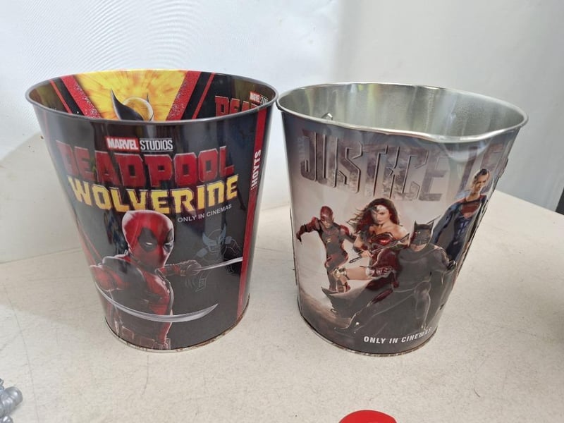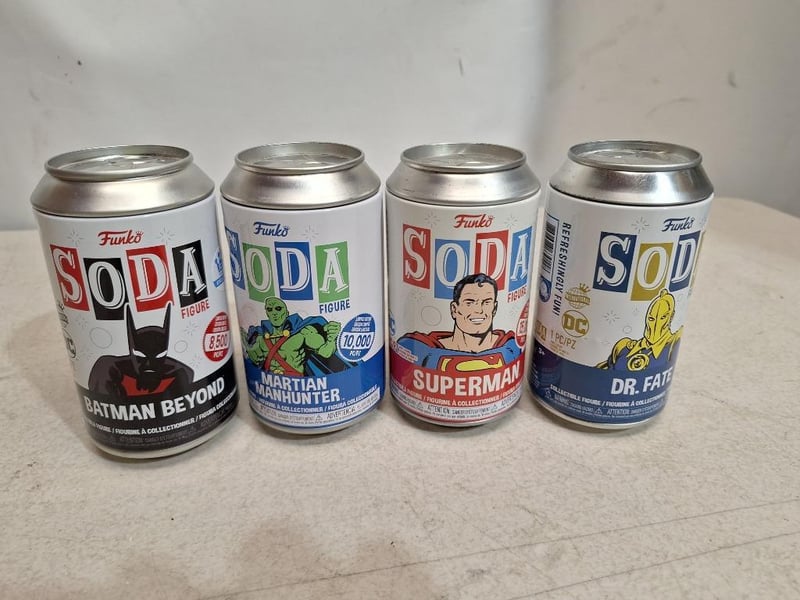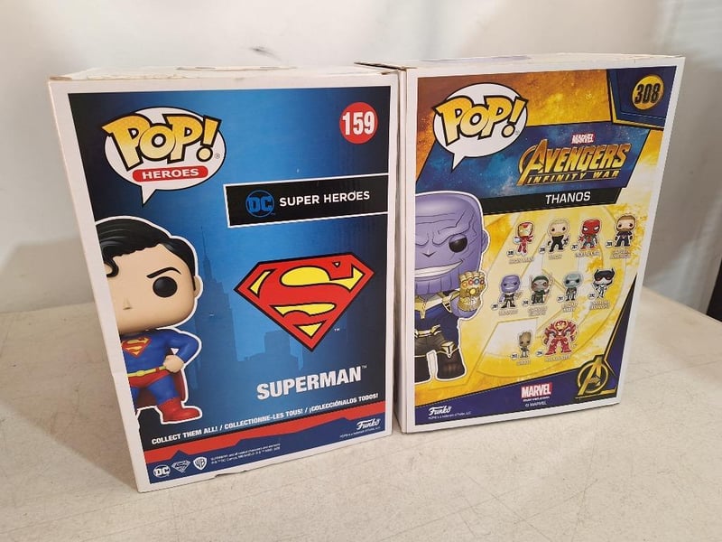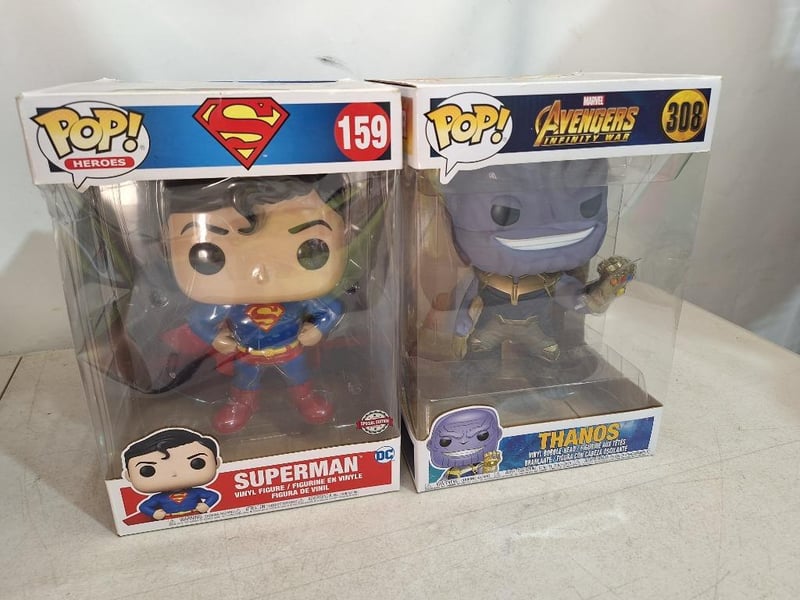 COLLECTABLES: 1 x FUNKO Vinyl Soda "Dr Fate" Figure, 1 x FUNKO Vinyl Soda "Superman", 1 x FUNKO Vinyl Soda "Martian Manhunter" Figure, 1 x FUNKO Vinyl Soda " The Flash" figure, 1 x FUNKO Vinyl Soda " Batman Beyond" figure, 1 x FUNKO vinyl figure 'THANOS' 10inch vinyl bobble-head 308, 1x FUNKO vinyl figure 'SUPERMAN' 10inch figurine 159, Collectable popcorn holders, drink bottles, moneybox, games and The Lord Of The Rings Pin Collection, Bag Full Of Rubber Ooshies