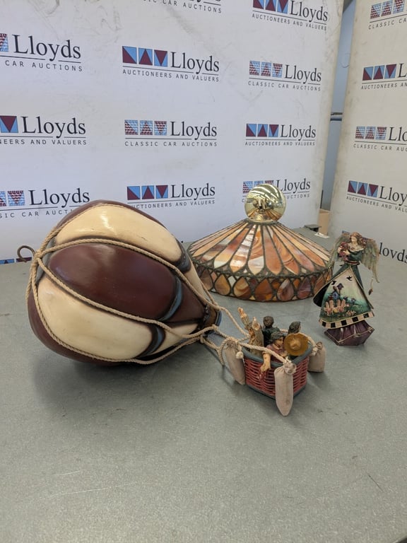 VARIOUS DECORATIVE COLLECTABLES Item Size: Height: 60cm, Width: 60cm, Depth: 40cm Including A Hangable Hot Air Balloon, Tiffany Style Lamp And Metal Angel Figurine. Condition: Fair - Refer To Images 233412+1