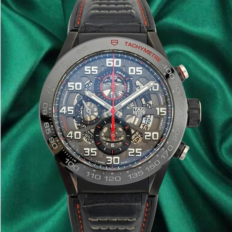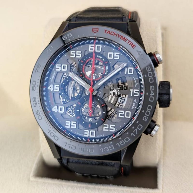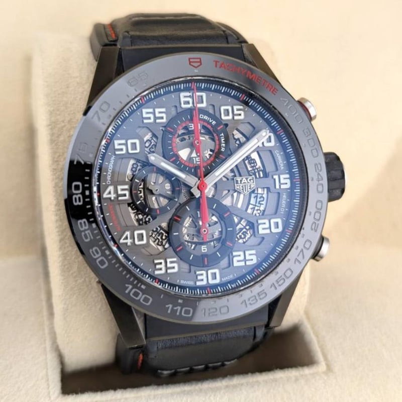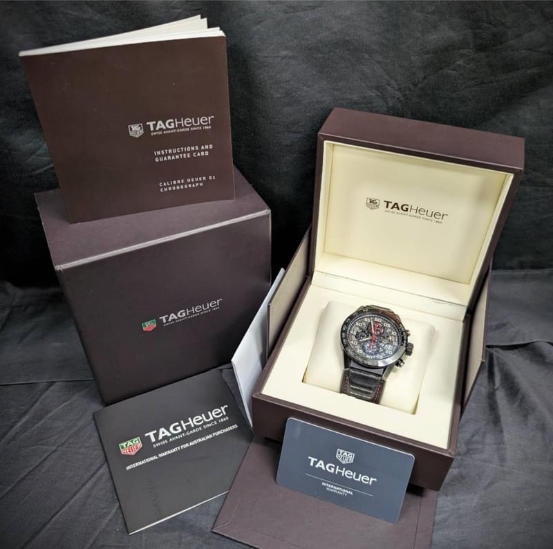 TAG HEUER CAR2A1H.FT6101 CARRERA 45MM 2018 BOX & PAPERS Price Guide - $5,000 - $7,000 Brand: Tag Heuer Reference: Car2A1H.Ft610 Model: Carrera Case Size: 45Mm Circa: 2018 Movement: Automatic Condition: Very Good Box: Yes Papers: Yes Condition: Good - Refer Images 0 488298+18