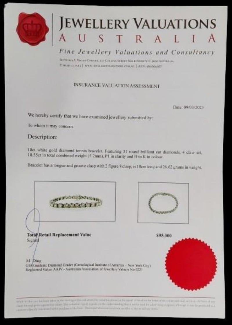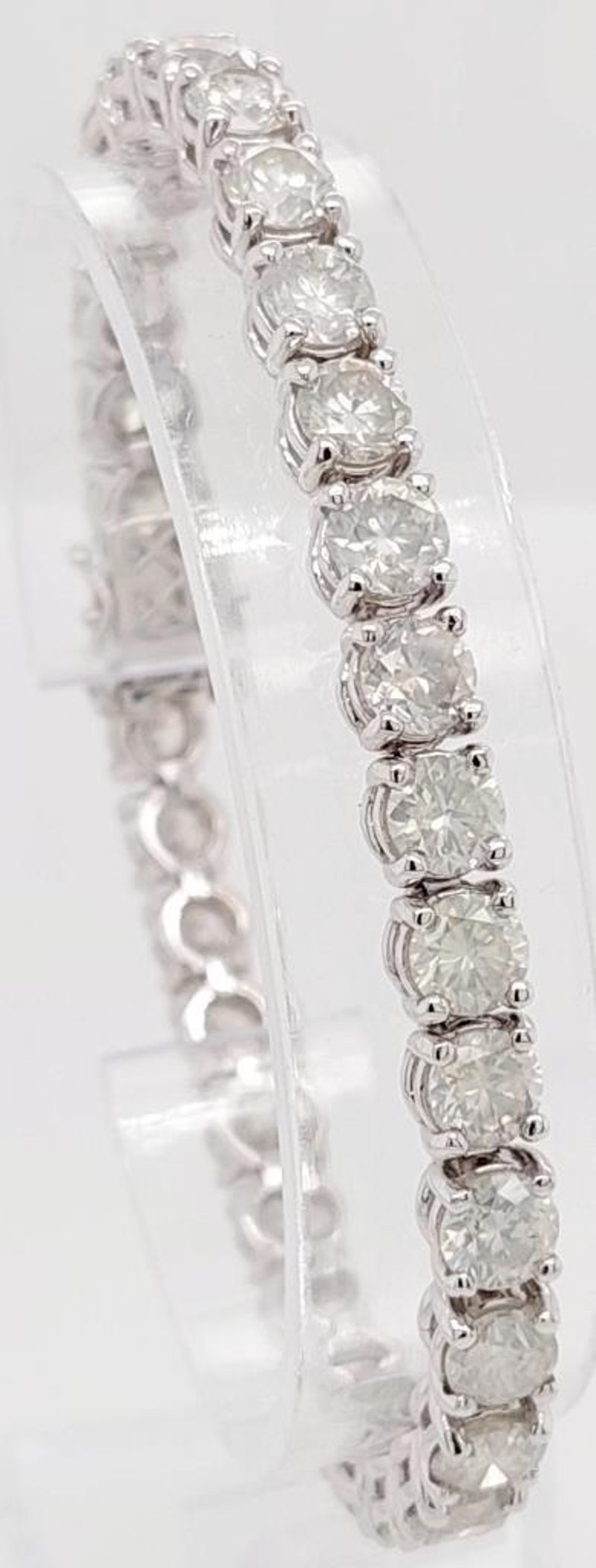 This 18Ct White Gold Bracelet Features 31 X Round Brilliant Cut 4 Claw Set Diamonds, Each Measuring Approx. 5.2Mm, 18.55Ct In Total Combined Weight, P1 In Clarity And H-K In Colour.
