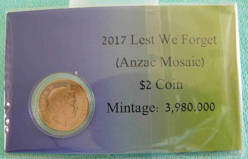 2017 MOSAIC FROM AUSTRALIAN WAR MEMORIAL HALL, CARDED $2 COIN. 488256+7