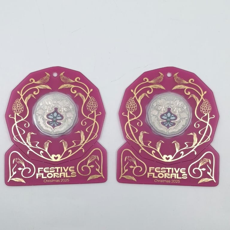 TWO ROYAL AUSTRALIAN MINT SCARCE 2025 CHRISTMAS FESTIVE FLORALS COLORISED COLLECTOR COINS. UNCIRCULATED Condition: Good587689+74