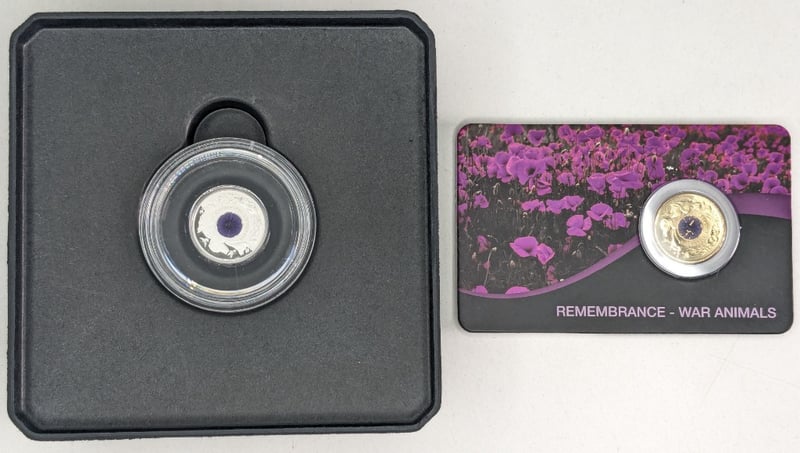 $2 'C' MARK COLOURED FINE SILVER PROOF COIN AND 2024 TWO DOLLARS REMEMBRANCE UNCIRCULATED COINS Item Size: Height: 5cm, Width: 5cm, Depth: 5cm, Weight: 0.5Kg Comes With Certificate Of Authenticity Condition: Good - Refer To Images FC 162976+3