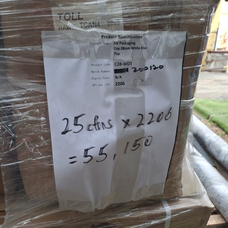 Pallet of Bottle Lids, White, 55,150 TO PALLETSOLD AS PALLET LOT