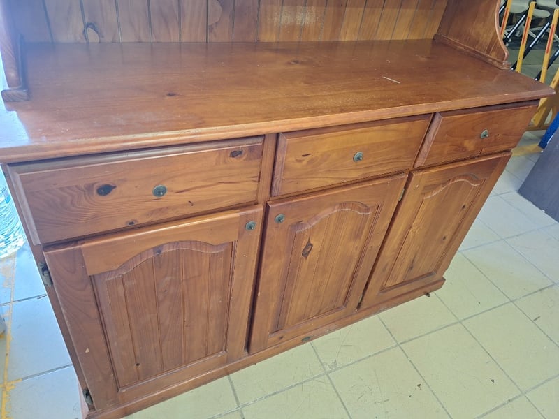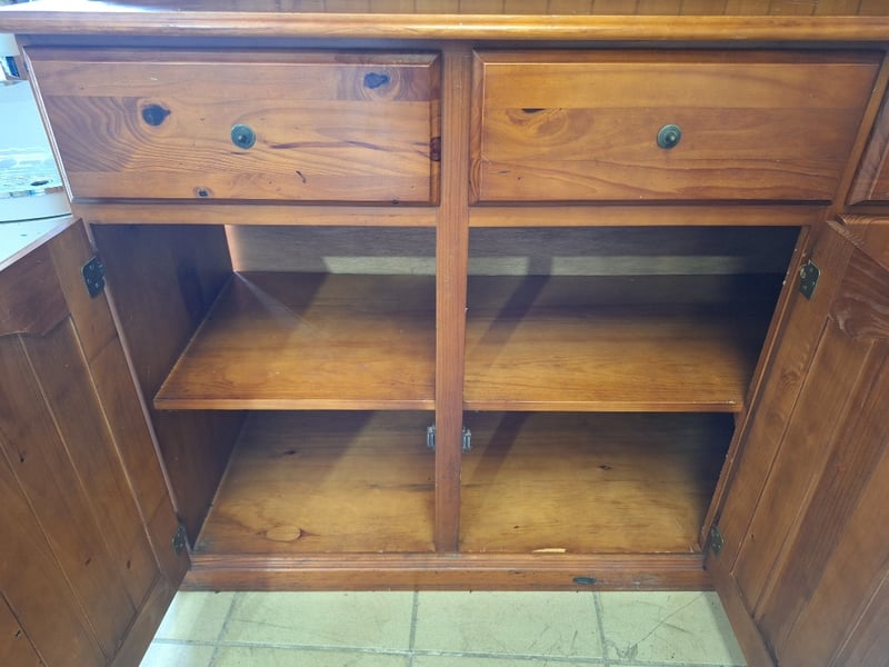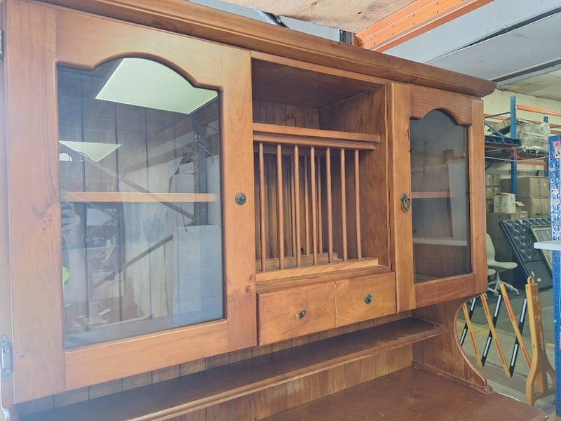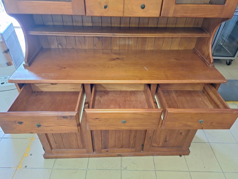 Buffet & Hutch Cabinet, Multi Storage Areas, Timber Style, Brown FinishDimensions H:194cm W:141cm D:47cm