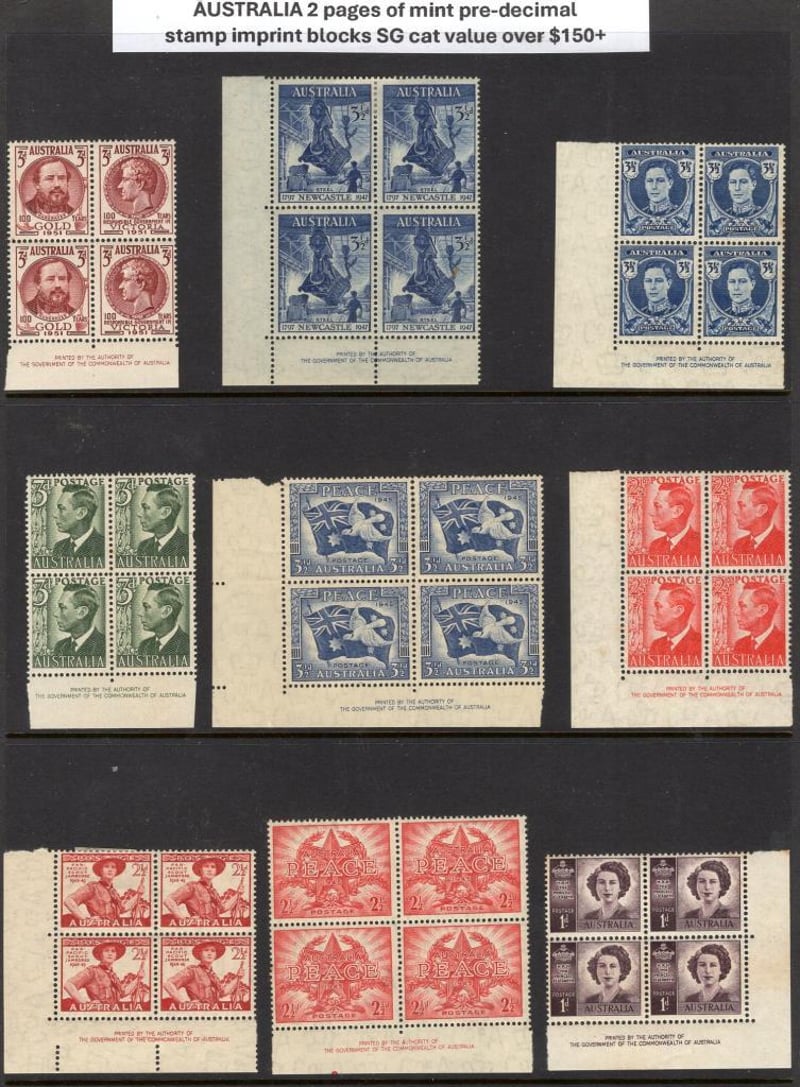 Australia 2 x pages mint pre-decimal imprint stamp blocks