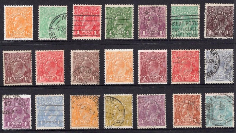 Australia KGV single crown watermark stamp set 1914-1925