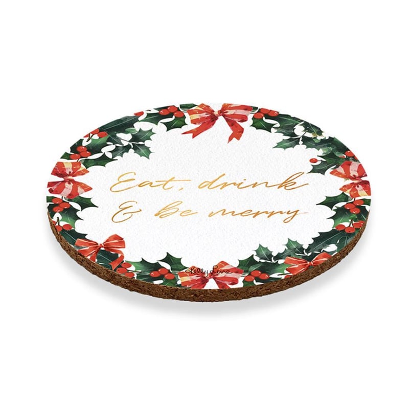 Christmas 10cm Cork Coaster Round Set of 6 by Kelly Lane - Qty of 4 SOLD AS LOT