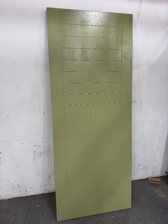 Door, Timber Frame, Horizontal Striped Pattern, Pastel Green & White Colour.Approx dimensions H204 x W92 x D4