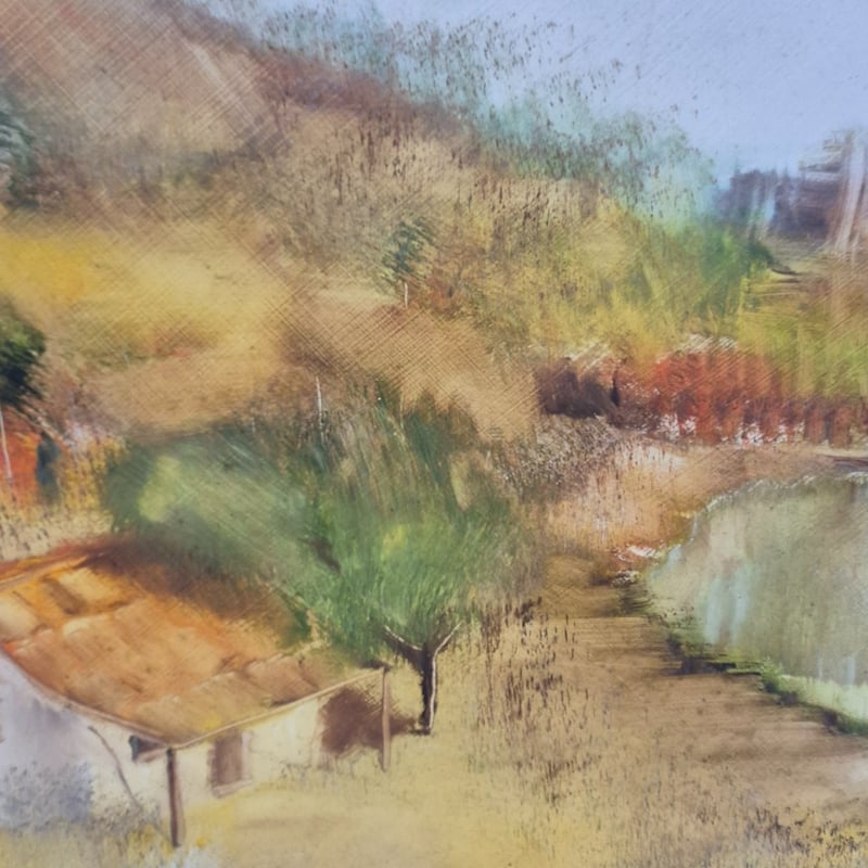 1 FRAMED ORIGINAL WATERCOLOUR PAINTING ON CANVAS