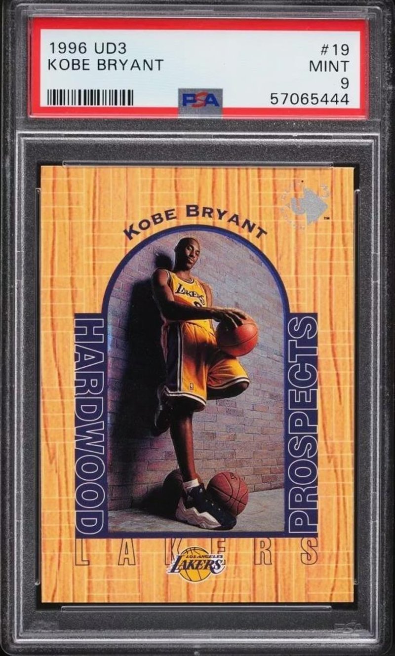 1996 UD3 HARDWOOD PROSPECTS KOBE BRYANT ROOKIE #19 – PSA 9 MINT, BLACK MAMBA #8 #24Stunning Mint Rookie Card From Upper Deck’S Premium 1996 Ud3 Series – Hardwood Finish With Psa Authentication - Nba Basketball Lakers LegendOverview:Offered Here Is A High-Grade Example Of The 1996 Ud3 Hardwood Prospects #19 Kobe Bryant Rookie Card, Encapsulated And Graded Psa 9 Mint. Issued During Bryant’S Iconic Rookie Season, This Card Forms Part Of Upper Deck’S Upscale Ud3 Release—A Product Line Distinguished By Its Distinctive Textured Hardwood-Style Finish And Etched Foil Enhancements. The Card Is An Official Early Career Release Capturing The Beginnings Of One Of Basketball’S Most Revered Legacies.Key Features:The Card Features A Vibrant, In-Action Image Of A Youthful Kobe Bryant During His Early Nba Appearances With The Los Angeles Lakers, Set Against A Backdrop That Mimics Polished Hardwood Flooring—An Homage To The Courts Where He Built His Legend. The “Hardwood Prospects” Subset Specifically Highlights Emerging Stars Of The 1996 Draft Class, And Few Names From That Generation Resonate Like Bryant’S. With Crisp Detailing, Strong Centring, And A High-Quality Finish, This Psa 9 Example Presents Near-Perfectly, With Only The Most Minute Surface Or Edge Wear Separating It From Gem Mint.Why This Card Is Collectable:Kobe Bryant’S Rookie Cards Have Remained Pillars Of Modern Basketball Collecting Since The Moment He Entered The League. His Influence On The Game, Combined With His Five Nba Championships And Unmatched Legacy, Ensures Long-Term Demand For Early Issue Material. The Ud3 Release, While Not As Heavily Produced As Other Flagship Sets, Occupies A Premium Lane Due To Its Design Innovation And Niche Appeal. A Psa 9 Mint Example Such As This Bridges Elite Presentation With Investment-Grade Condition.Collector Appeal:This Card Is Ideally Suited To Collectors Of Rookie-Era Kobe Bryant Material, 1990S Basketball Insert Sets, Or Those Assembling Psa-Graded Collections Of High-Profile Players. It Presents Well In Displays And Remains Securely Housed In Psa’S Tamper-Evident Holder. For Enthusiasts Of The 1996 Draft Class, Or Those Seeking To Acquire Historically Significant Kobe Pieces At The Upper End Of Condition Scales, This Listing Represents A Compelling Opportunity.584885+9