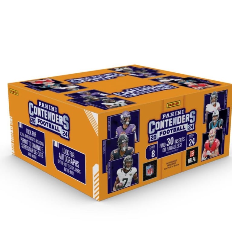 2024 PANINI CONTENDERS FOOTBALL RETAIL BOX The Juggernaut That Is Contenders Football Returns For The 2024 Season, Boasting Its Trademark Arsenal Of Collection-Making Content Headlined By Rookie Ticket Autographs, A Spectacular Array Of Parallels, Must-Have Inserts And So Much More.Look For A Variety Of Npp-Exclusive Insert Parallels, Including Blue (Blaster), Green (Fat Pack) And Teal (Mega Box).Condition: Good - Refer To Images488292+33443