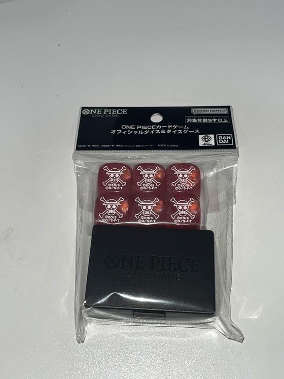ONE PIECE CARD GAME OFFICIAL DICE & DICE CASE DISPLAY JAPANESE EDITIONAdd A Unique Piece Of One Piece Collectible Gaming Gear To Your Collection With This Official One Piece Card Game Dice & Dice Case Set.This Brand-New, Factory-Sealed Set Includes A Black Storage Case Featuring The Iconic One Piece Logo, Alongside Six Red Dice Adorned With The Straw Hat Pirates’ Jolly Roger Symbol.Produced By Bandai, This Set Is An Official Piece Of One Piece Card Game Merchandise — Perfect For Players Who Want To Show Off Their Love For The Series While Adding A Stylish Touch To Their Gameplay.Whether You’Re A Veteran Of The Game Or A Newcomer, This Collectible Set Makes A Great Addition To Your Collection Or A Thoughtful Gift For A Fellow One Piece Fan.Condition: Good - Refer To Images488292+33455