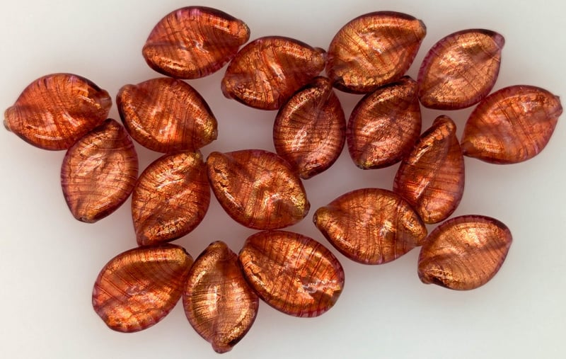 18 X ITALIAN MURANO DRILLED BEADS WITH STERLING SILVER BOLT RINGColour: Coral, Shape: Leaf, Size: 20MmFC162953+56