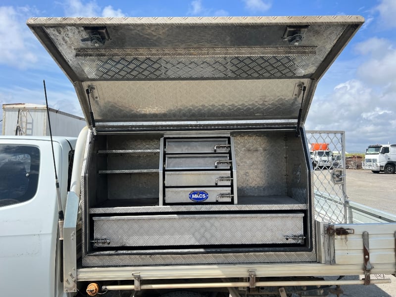Description/Extras: Alloy Tray, Mac Tool Boxes one side with draws, Lockable Cage in the Middle, Tow Bar, Bridgestone Tyres, 2 way Radio, Isuzu Seat covers, Log-Books, Ex-Council Vehicle