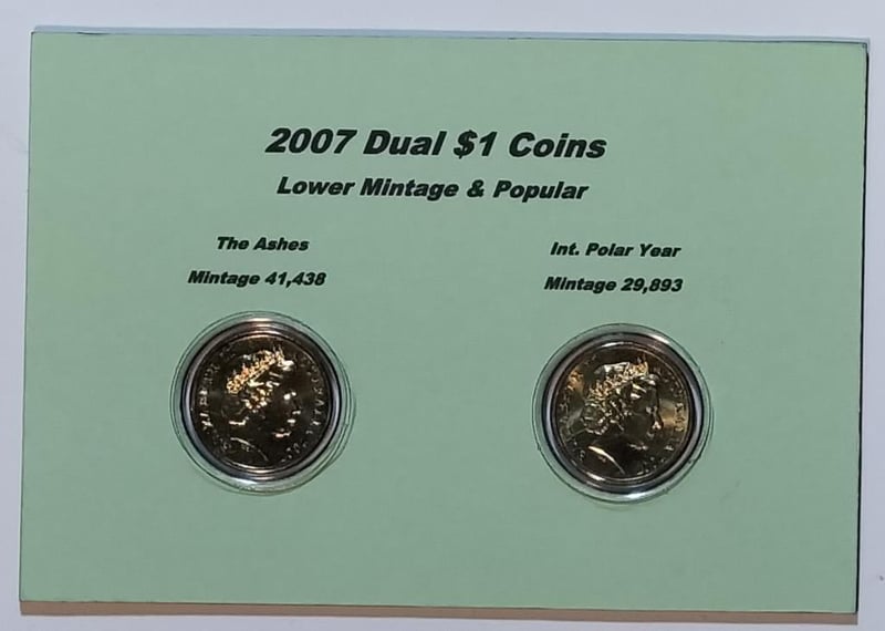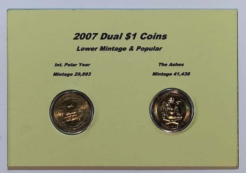 2007 DUAL $1 COINS LOWER MINTAGE & POPULAR $1 INT. POLAR YEAR & THE ASHES Condition: UNCEx Mint Roll; Pnc23528+9
