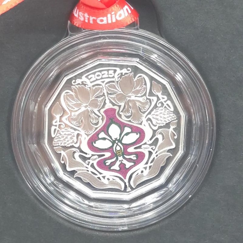 AUSTRALIAN COIN Royal Australian Mint Scarce 2025 Festive Florals Colored Silver Coin. Condition: Proof587610+16