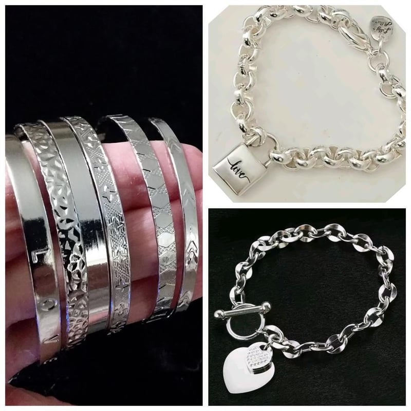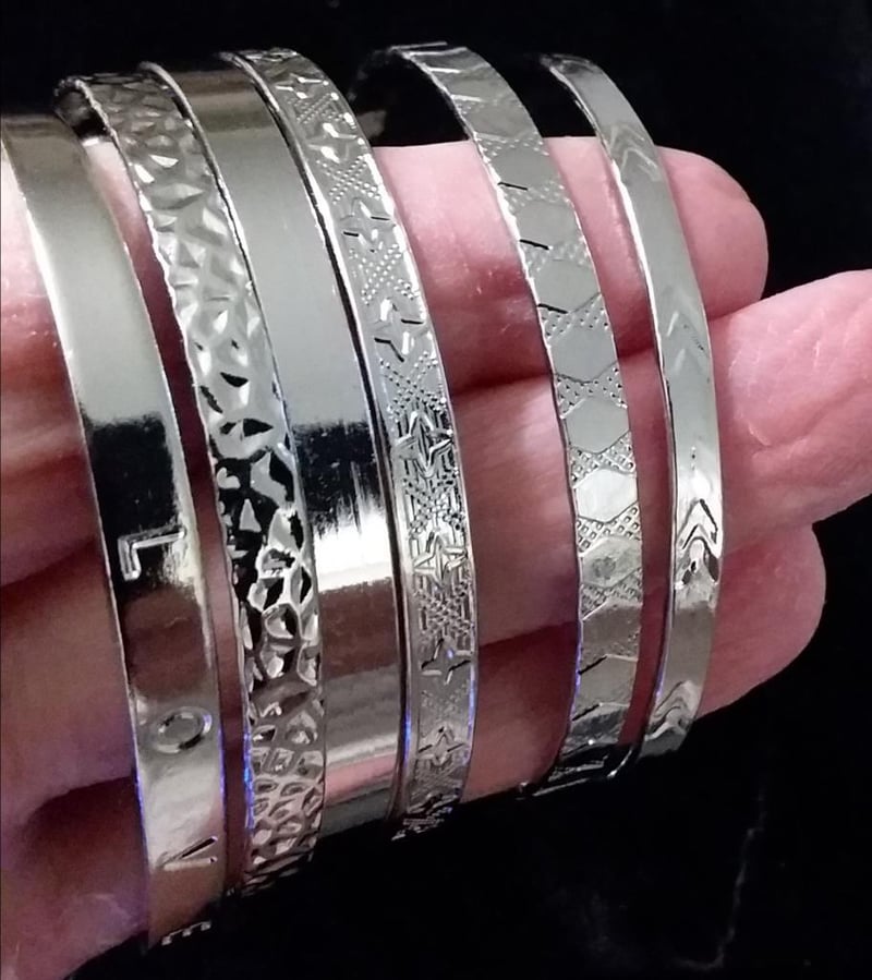 CUFF BANGLES AND 2 CHAIN BRACELETS STAINLESS STEEL X 6 Condition: Good - Refer to images. 0+46