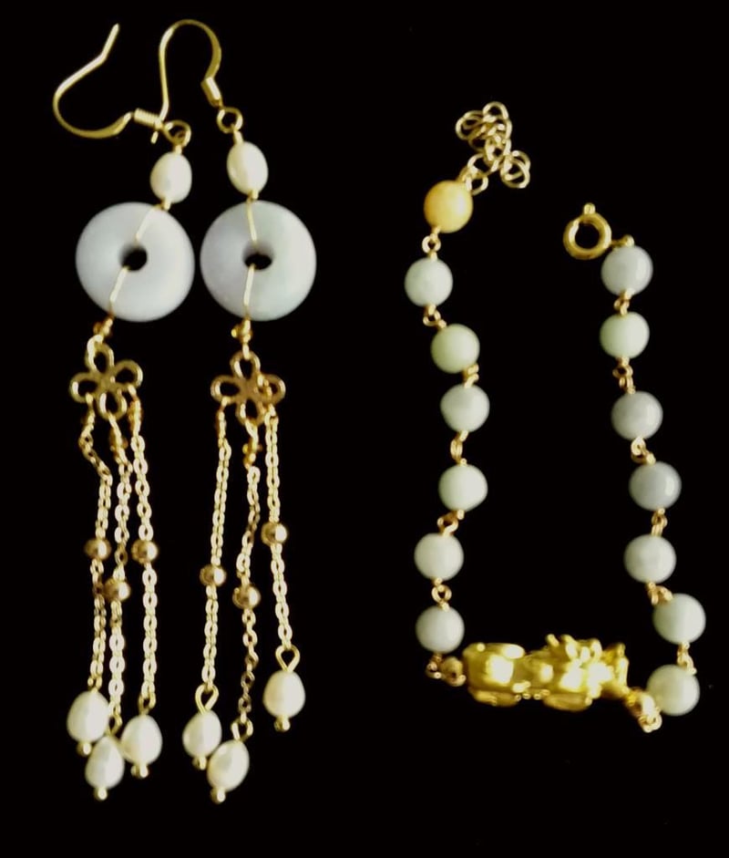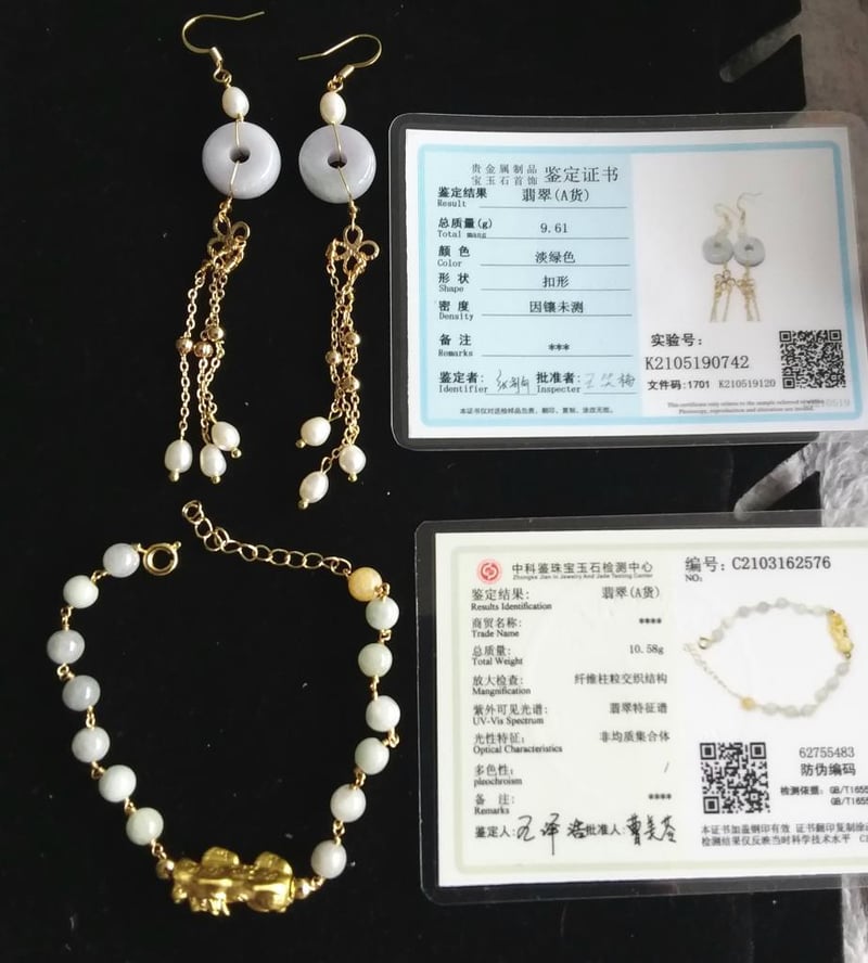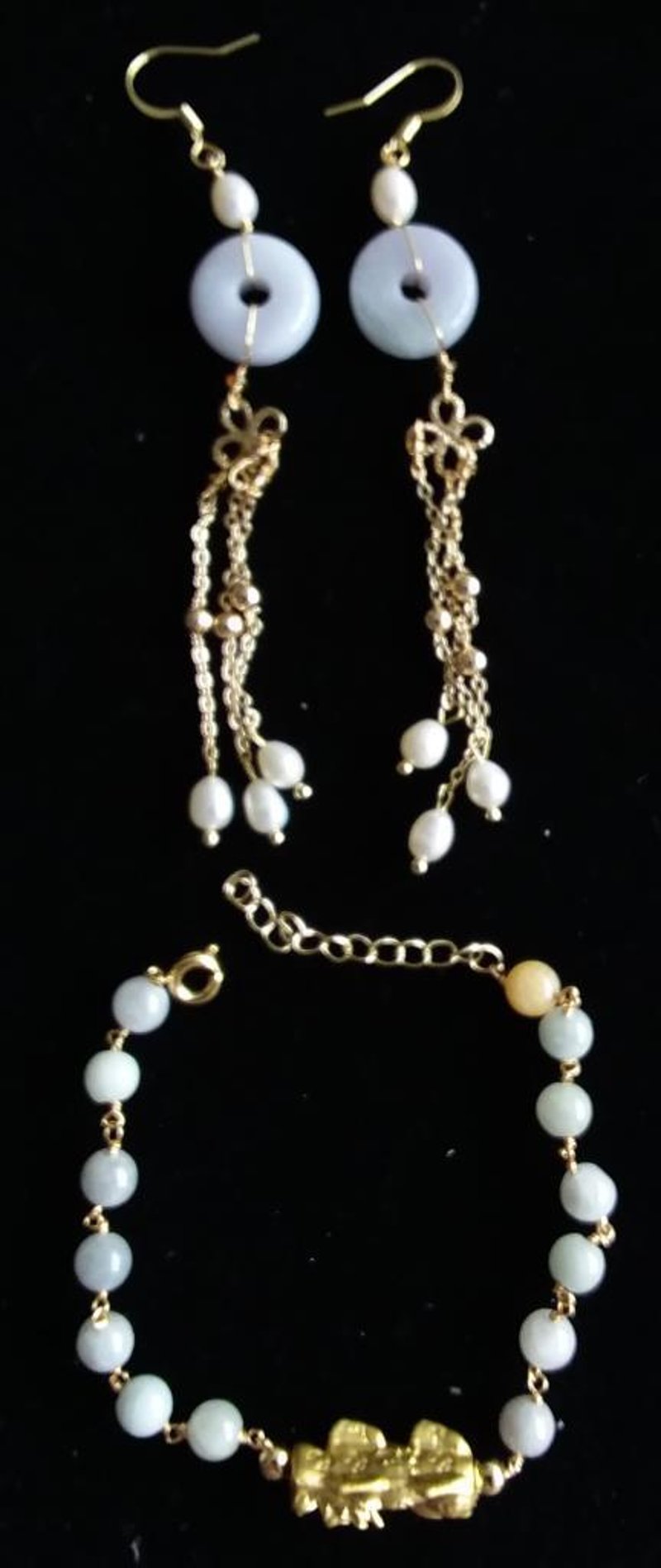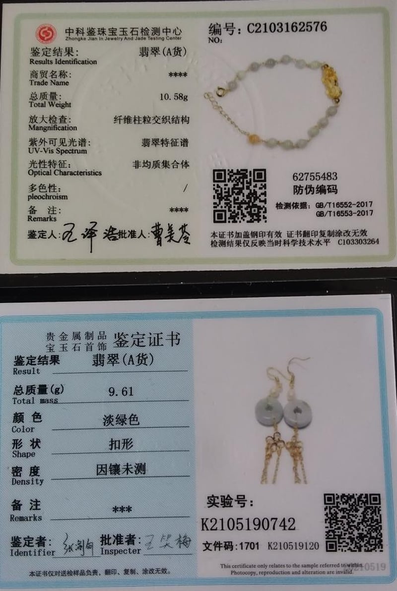 CERTIFIED CHINESE ICE GREEN JADE BRACELET AND DROP EARRINGS Condition: Good - Refer to Images 0162945+36FC