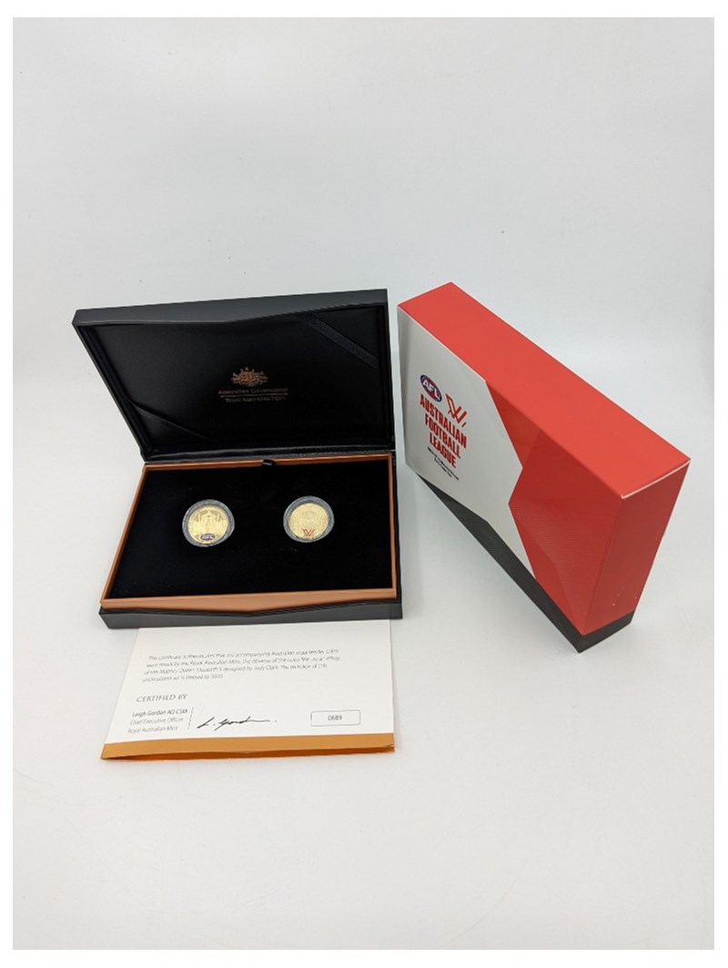 ROYAL AUSTRALIAN MINT 2024 AFL FOOTBALL LEAGUE TWO $2 COLOURED COINSCondition: Proof996802+14