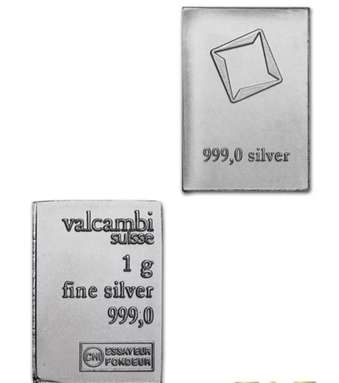 999 FINE SILVER 1 GRAM VALCAMBI SUISSE BAR 999 Fine Silver 1 Gram Valcambi Suisse Bar +54