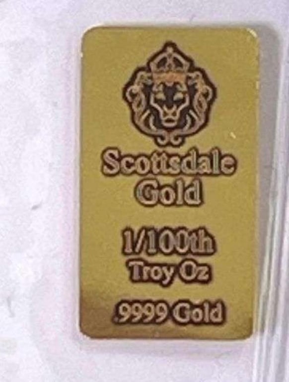 SCOTTSDALE LION 1/100OZ 9999 GOLD BULLION BAR Scottsdale Lion 1/100Oz 9999 Gold Bullion Bar +69