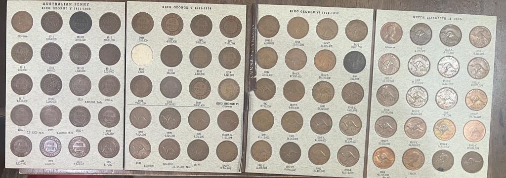 AUSTRALIA COMPLETE SET OF PENNIES SET INCLUDING 1925 & 1946 PENNIES TOTAL PENNIES 79 AUSTRALIAN MISSING IS 1930 PENNY 1925 & 1946 VERY NICE HIGH GRADE…PLEASE NOTE ALBUM HAS WEAR & TEAR DUE TO THE AGE…PLUS ALBUM IS BROKEN Australia Complete Set Of Pennies Set Including 1925 & 1946 Pennies Total Pennies 79 Australian Missing Is 1930 Penny 1925 & 1946 Very Nice High Grade…Please Note Album Has Wear & Tear Due To The Age…Plus Album Is Broken +81