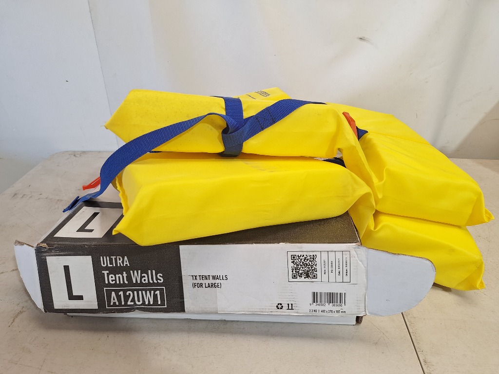 Vuly Ultra Large Tent Walls, x2 Axis Adult PFD (Personal Flotation Device) Level 100 Dimensions H:30cm W:50cm D:40cm SOLD AS LOT