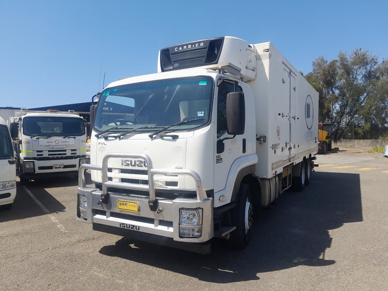 Description/extras: Air Conditioning, Power windows, SRS, Tinted windows, AUX / USB, Central locking, CD player, Owners manual. Refrigeration truck in working condition, car seat covers, small sleeper, UHF radio, digital temp display in cab, long fridge back with adjustable compartment divider, rear hoist with remote control, pallet jack and side access to the back of truck,.