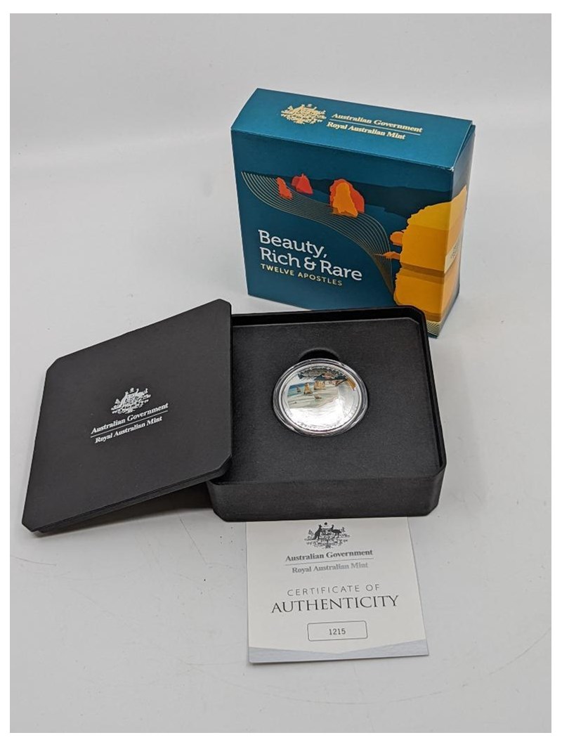 ROYAL AUSTRALIAN MINT 2023 BEAUTY, RICH & RARE TWELVE APOSTLE DOMED COLOURISED 1OZ DOMED SILVER $5 COINCondition: Proof235235+28